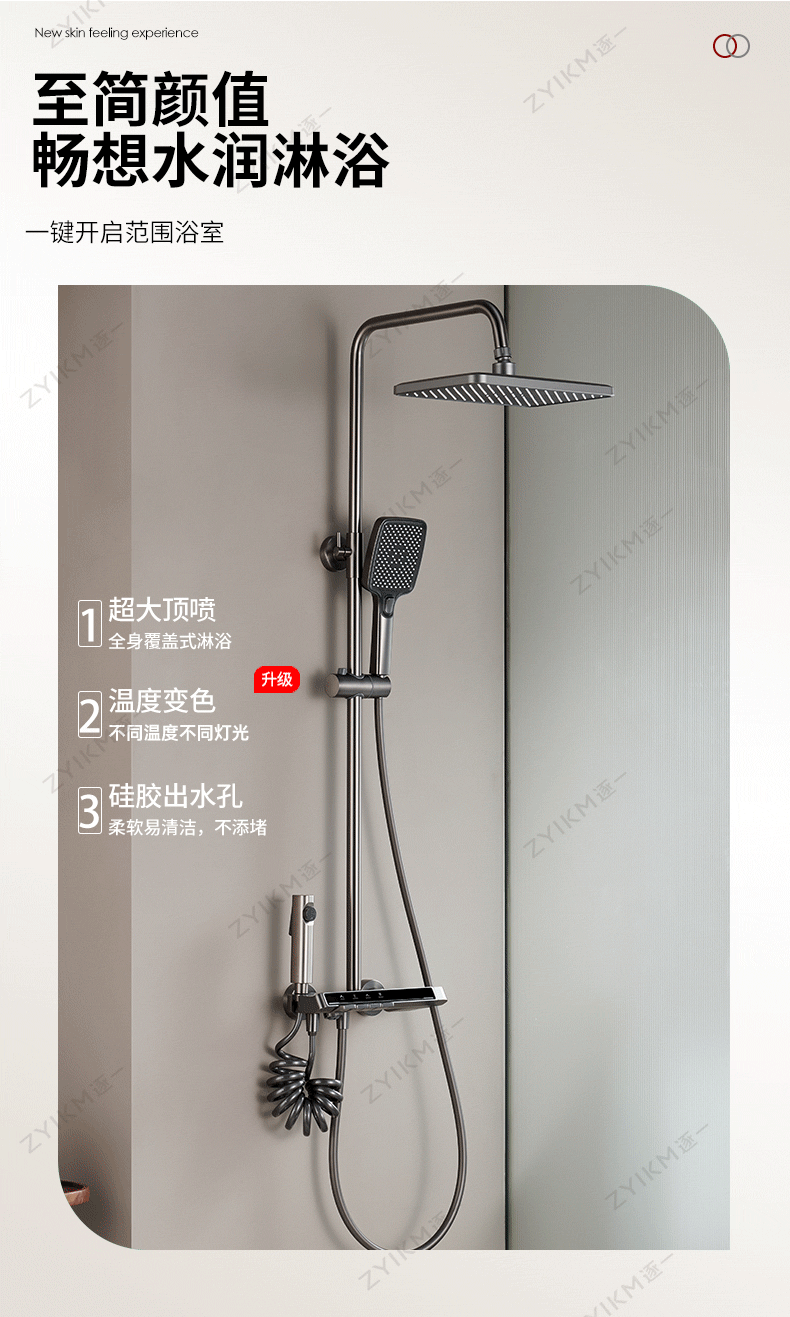 Pistola uno por uno gris cabeza de ducha traje hogar cobre baño ducha lluvia blanco sobrealimentado ducha