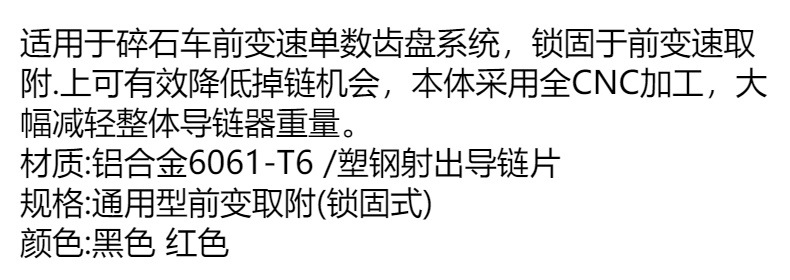 | Colores | Dispositivo de cadena de oreja colgante de montaje directo negro,Dispositivo de cadena de oreja colgante de montaje directo rojo,31.8 Dispositivo de cadena de estabilización de anillo de clip negro,31.8 Dispositivo de cadena de estabilización de anillo de clip rojo,34.9 Dispositivo de cadena de estabilización de anillo de clip negro,34.9 Cadena estabilizadora de anillo de clip rojo |
