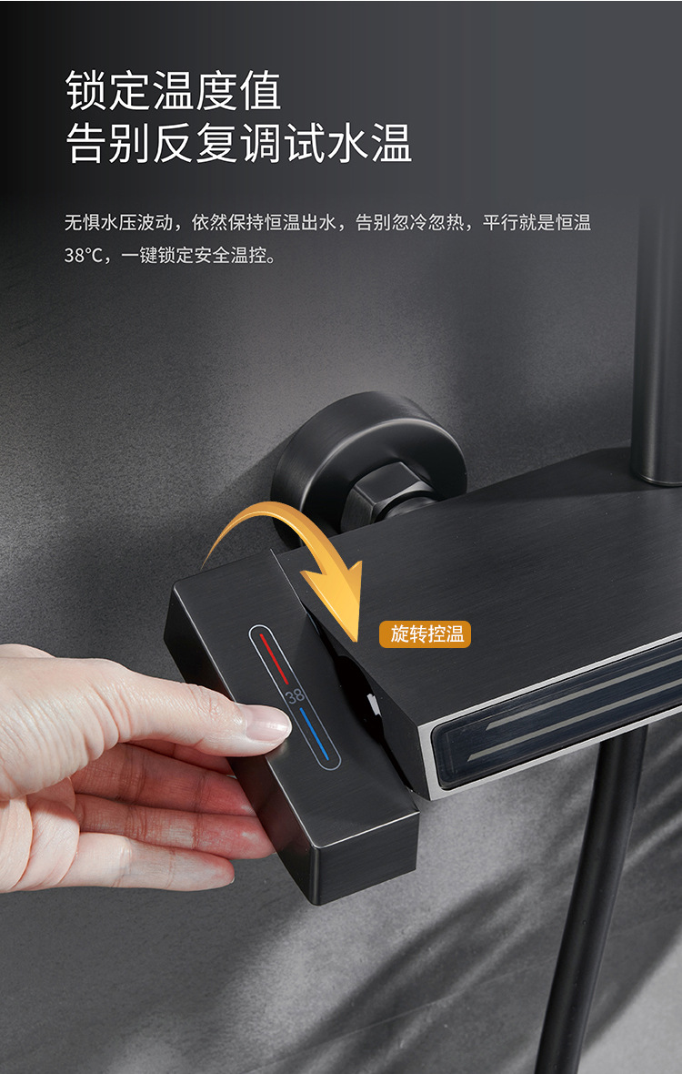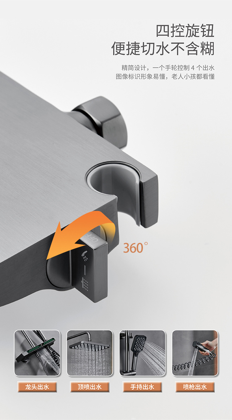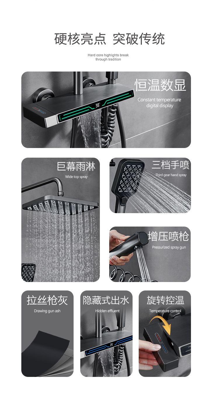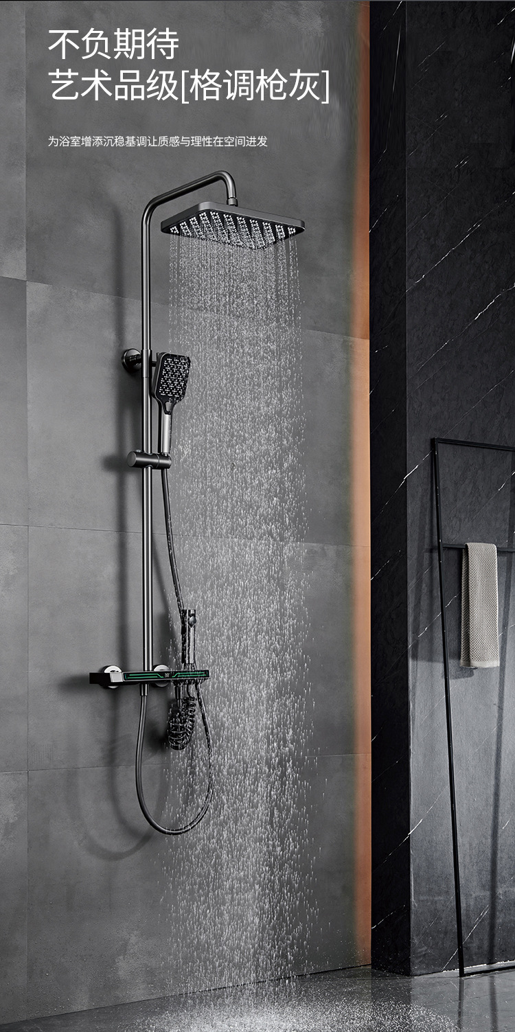 Pistola uno por uno Juego de ducha de temperatura constante gris Pantalla digital Baño de cobre Baño del hogar Baño de ducha presurizado