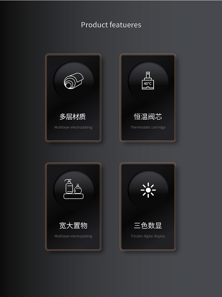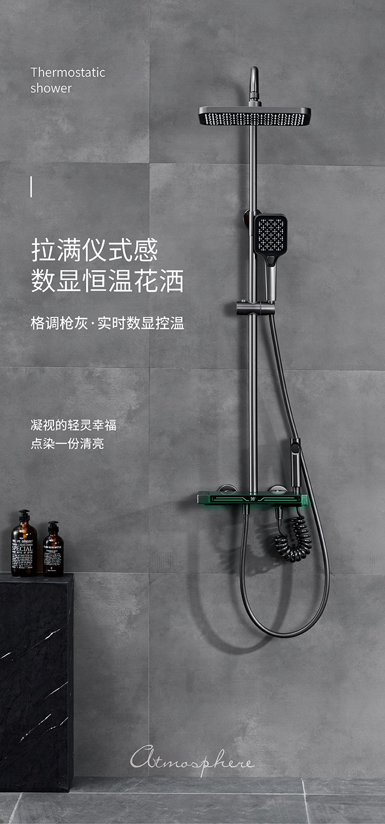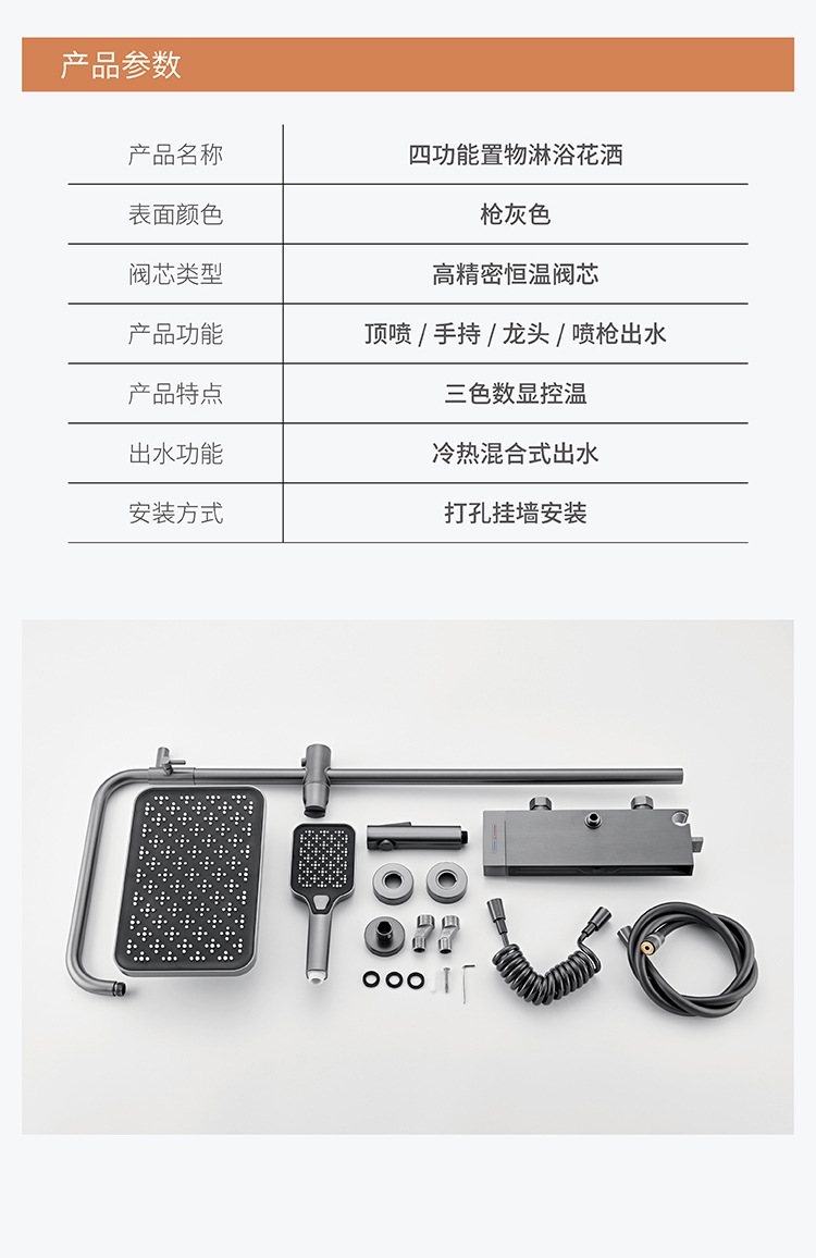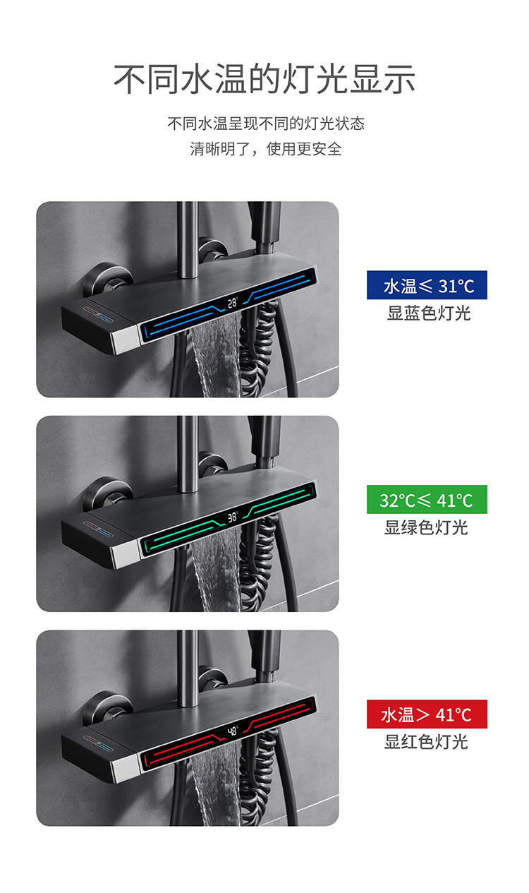 Pistola uno por uno Juego de ducha de temperatura constante gris Pantalla digital Baño de cobre Baño del hogar Baño de ducha presurizado