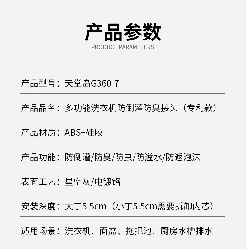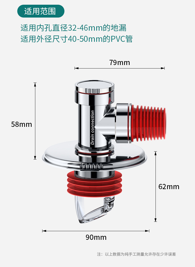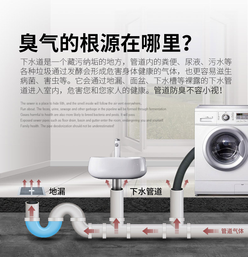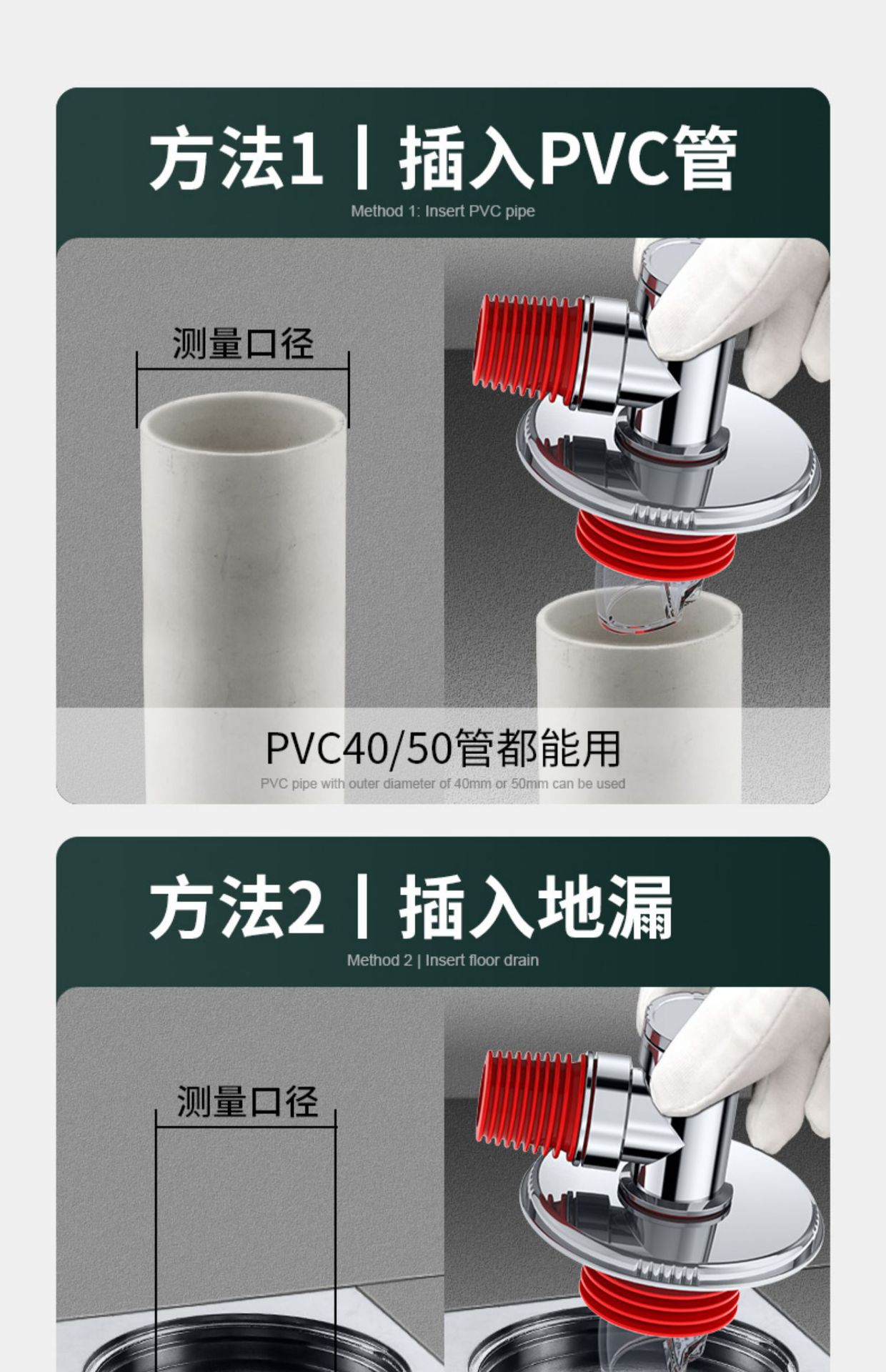 Tubería de drenaje de piso de la lavadora Tubería de drenaje Tubería de drenaje Especial a prueba de insectos, desodorante y a prueba de desbordamiento Tapa de baño de tres vías