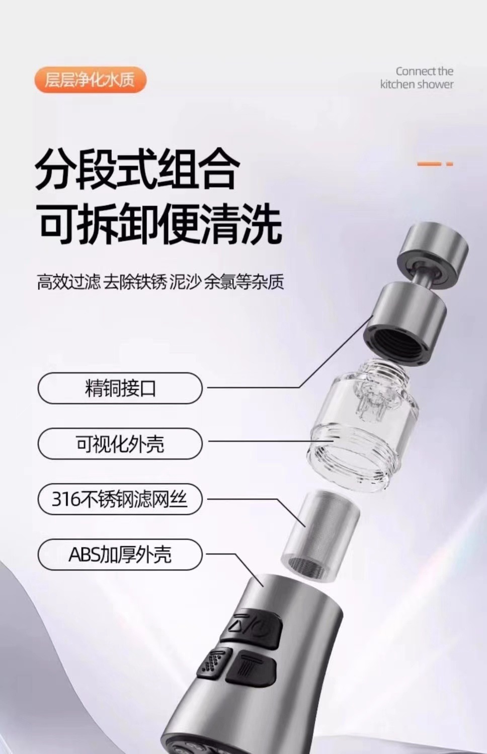 Lavabo de cocina transfronterizo, grifo, artefacto a prueba de salpicaduras, filtro, purificación de agua, purificación de agua del grifo, uso universal doméstico extendido