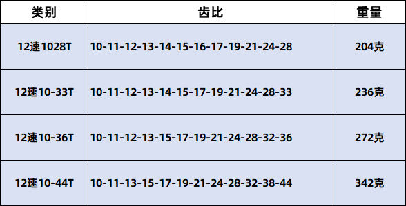 | Colores | 12 velocidades 10-28T,12 velocidades 10-33T,12 velocidades 10-36T,12 velocidades 10-44T |