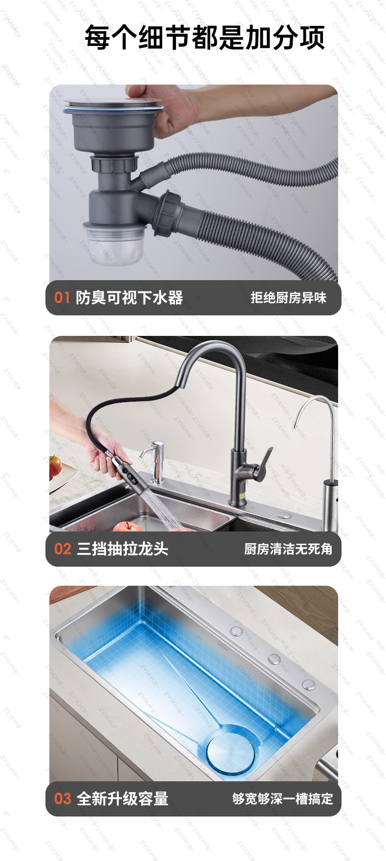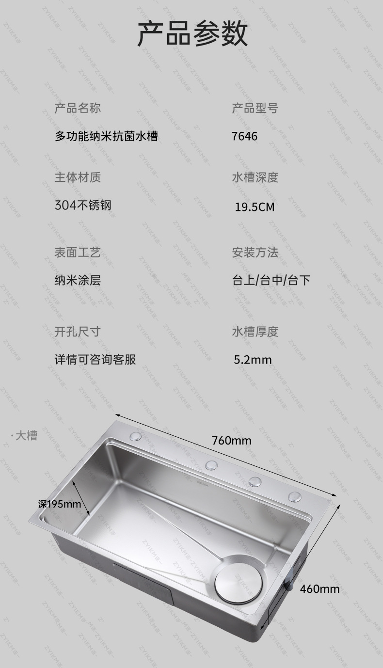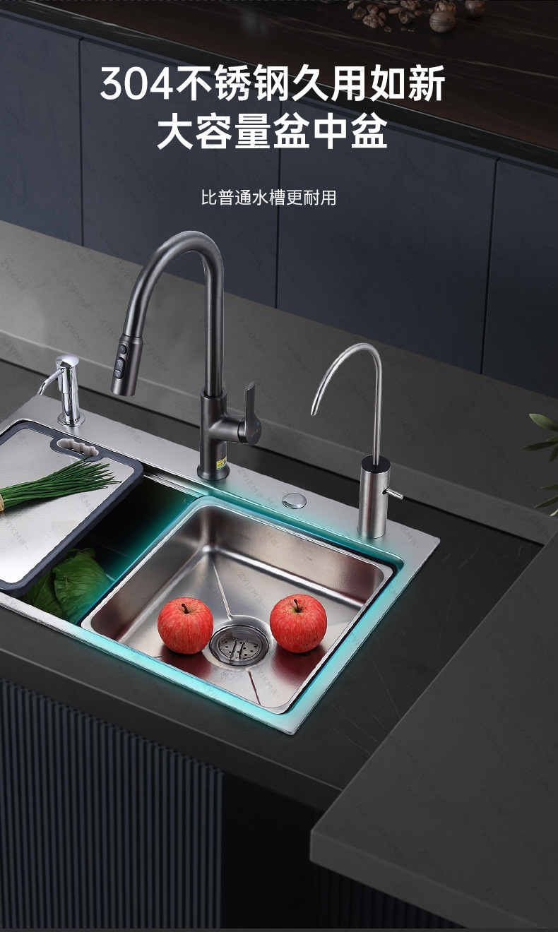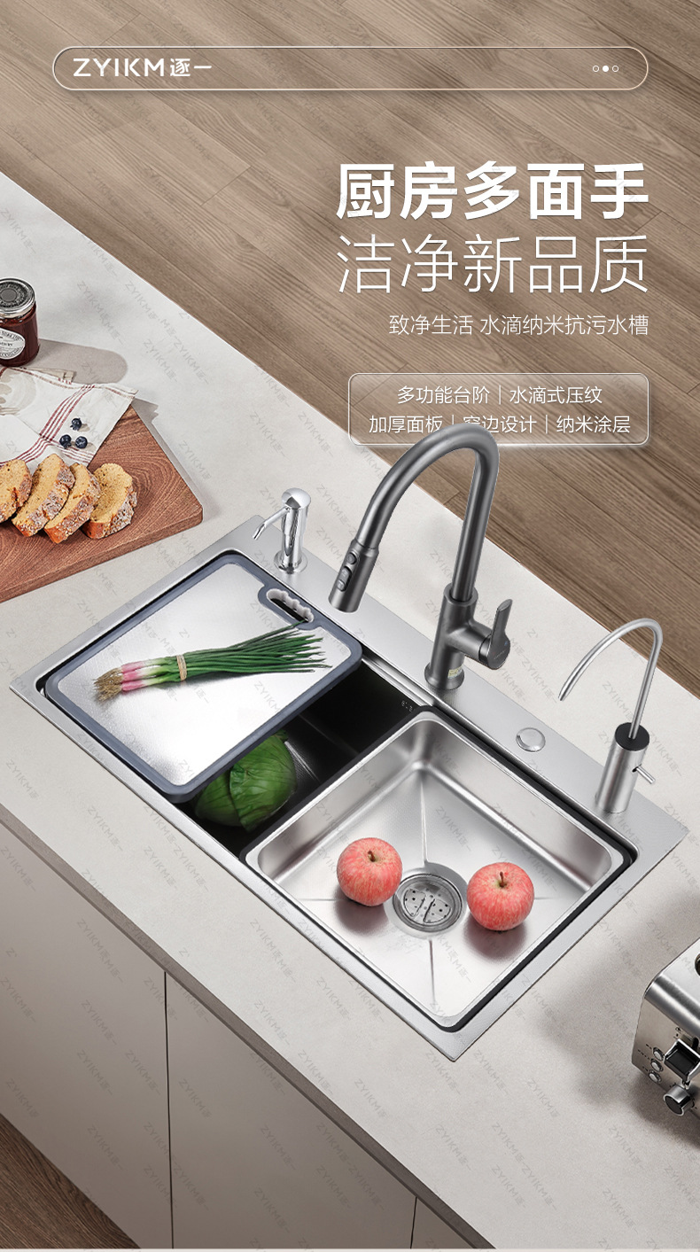 Fregadero en relieve grueso de acero inoxidable SUS304 de 5.0 de espesor, fregadero de cocina, fregadero, lavabo individual grande superior, medio e inferior