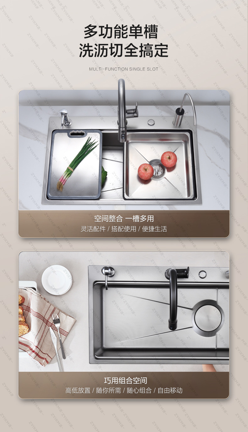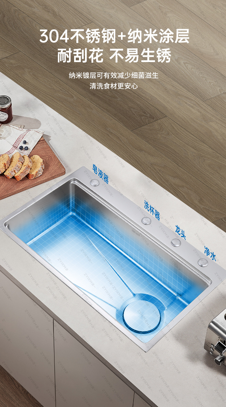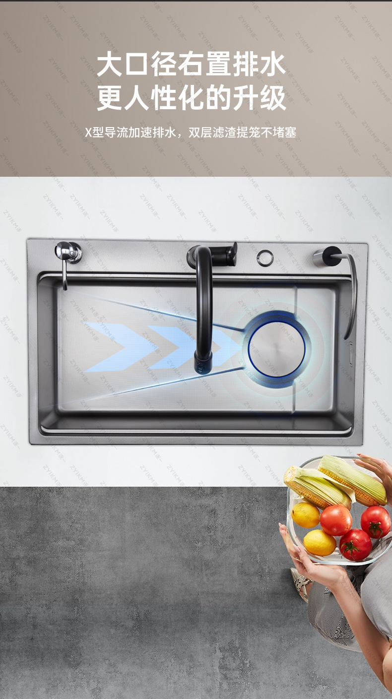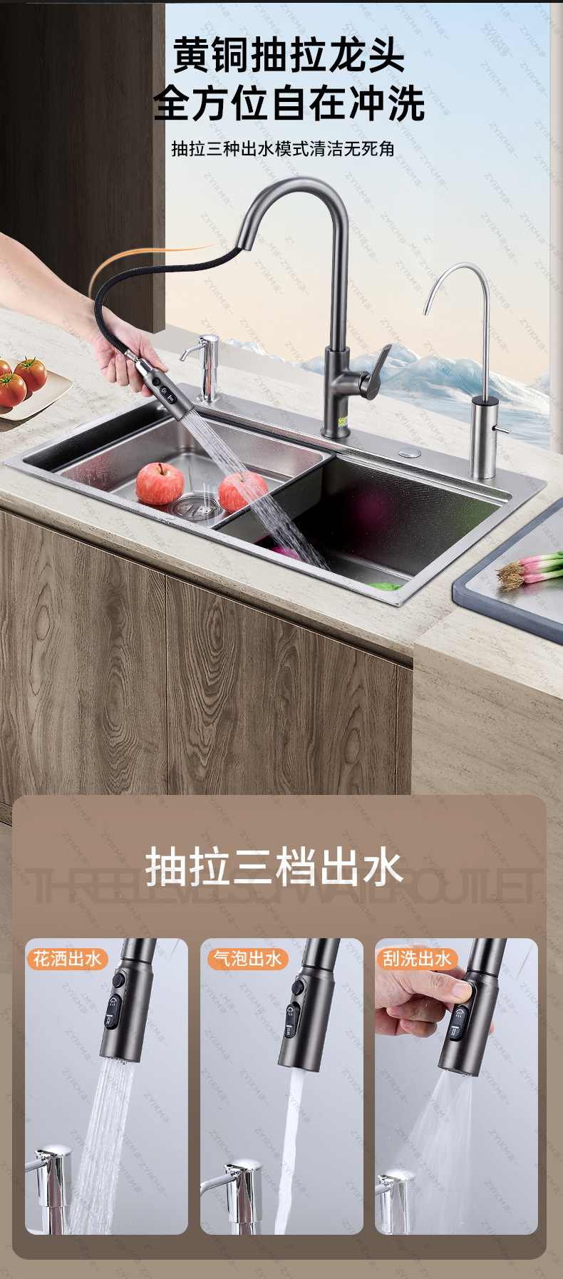 Fregadero en relieve grueso de acero inoxidable SUS304 de 5.0 de espesor, fregadero de cocina, fregadero, lavabo individual grande superior, medio e inferior