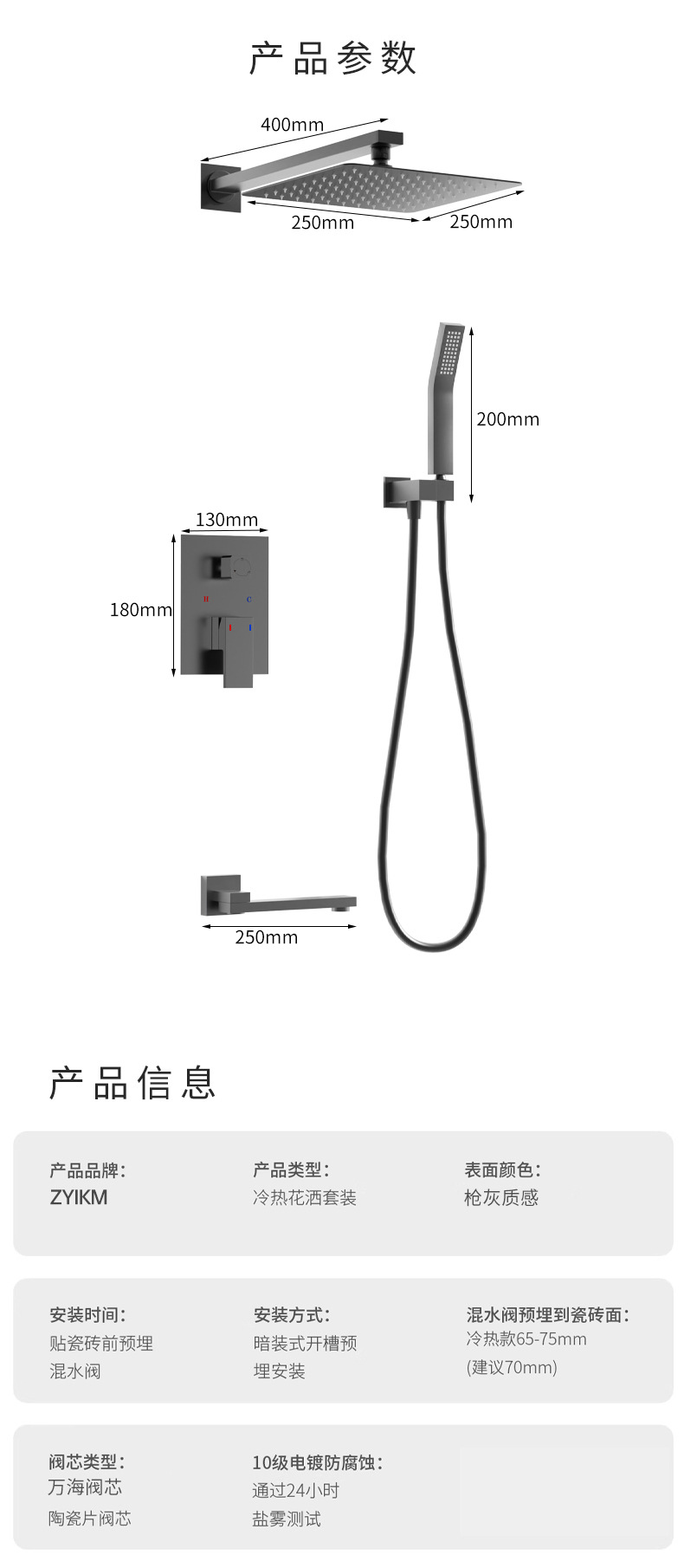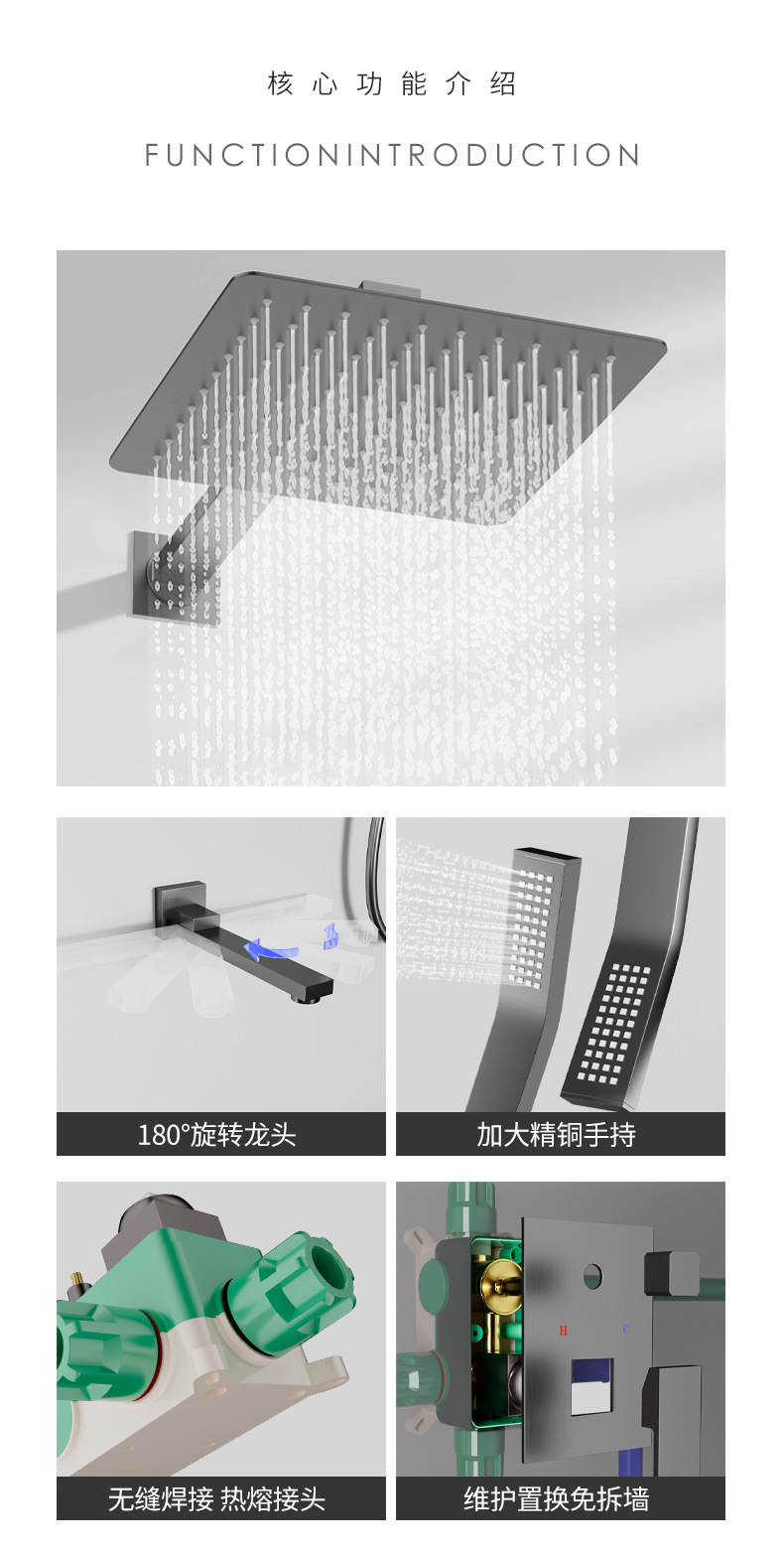 Todo el cobre, uno por uno, ducha preincrustada de fusión en caliente, pantalla de ducha de temperatura constante integrada, espejo de ducha, boquilla de lluvia, juego de presurización
