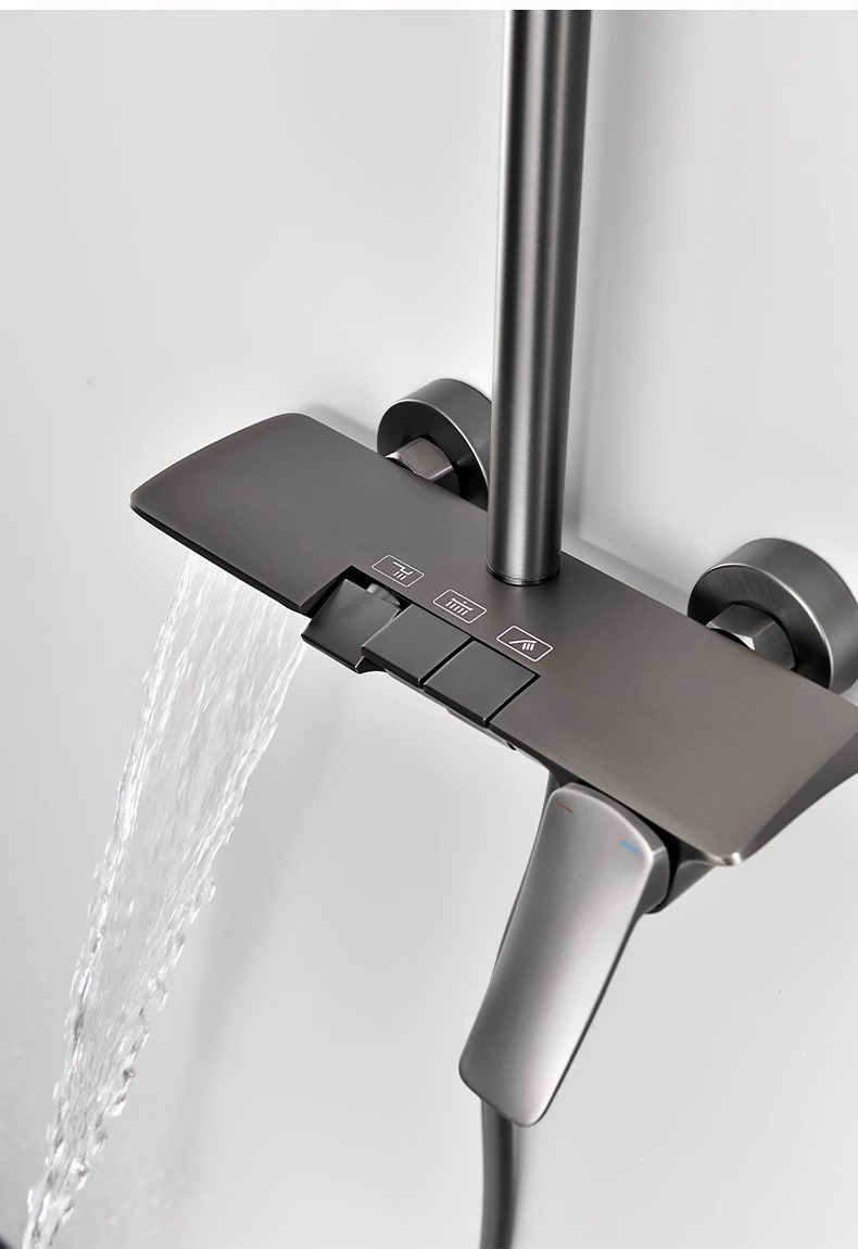 Juego de ducha de ducha de ingeniería de hotel, baño de cobre completo, ducha, ducha, ducha, botón de piano, ducha sobrealimentada