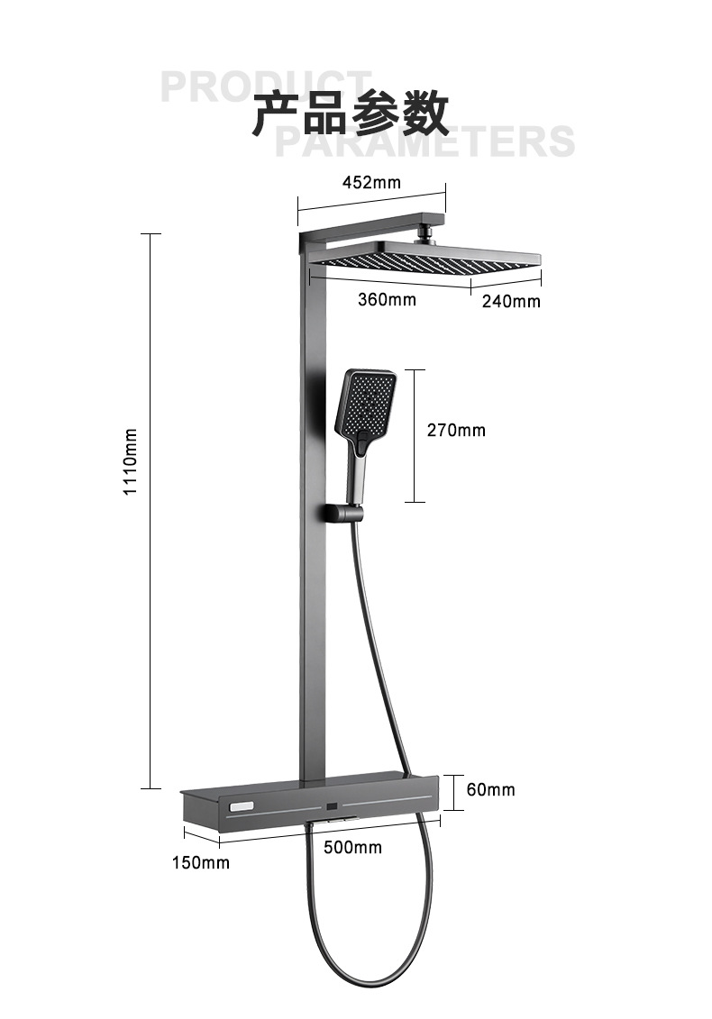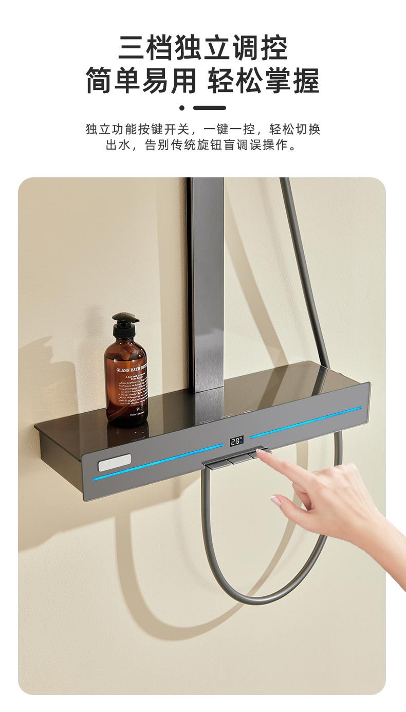 Uno por uno temperatura constante traje de ducha inteligente Hotel baño Faro de tres velocidades sobrealimentado baño ducha traje pistola Gris