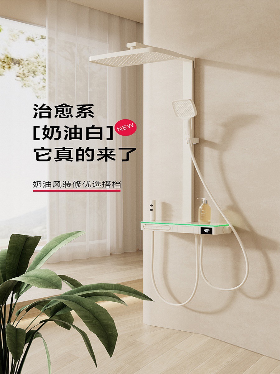 De alta gama blanco lechoso temperatura constante pantalla digital traje de ducha baño decoración spray de nuevo lámpara de eliminación de cloro traje sobrealimentado de cinco velocidades