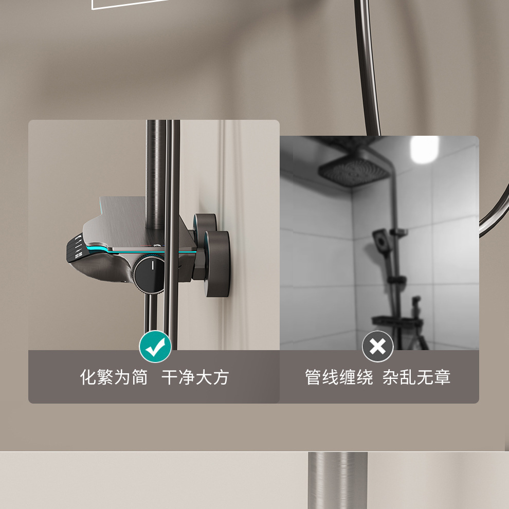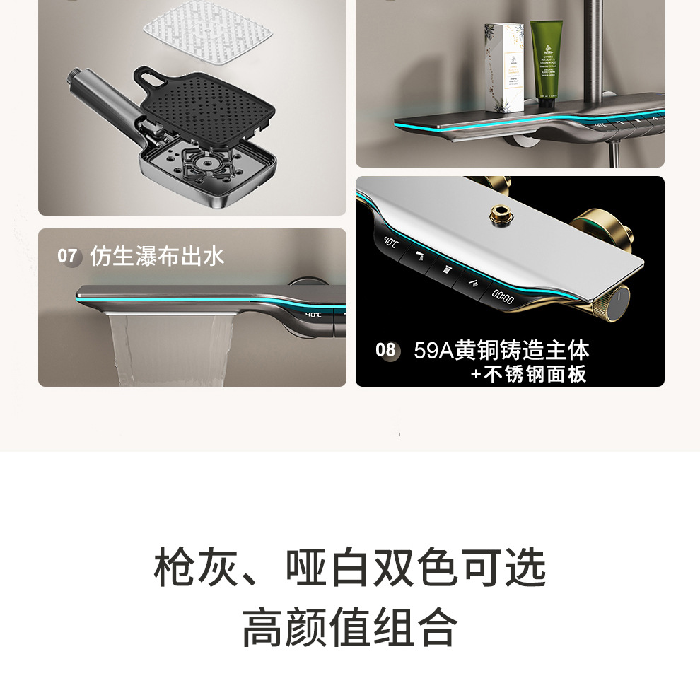 Pantalla Digital atmósfera temperatura constante traje de ducha hogar pistola de cobre gris Válvula de mezcla Booster baño ducha cascada