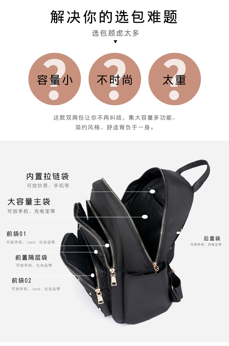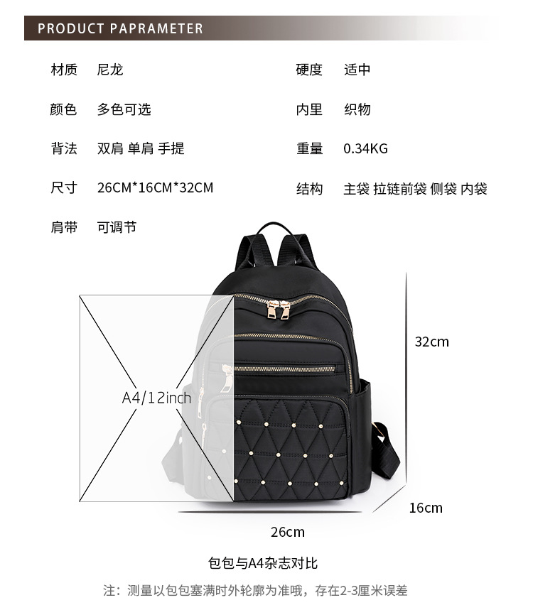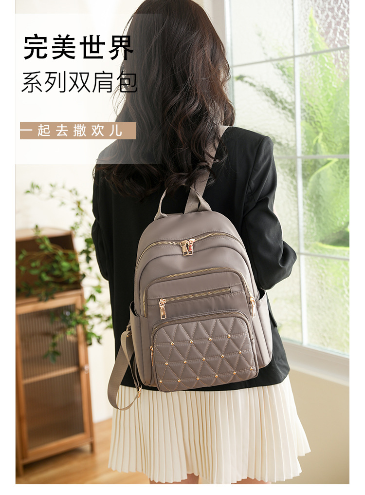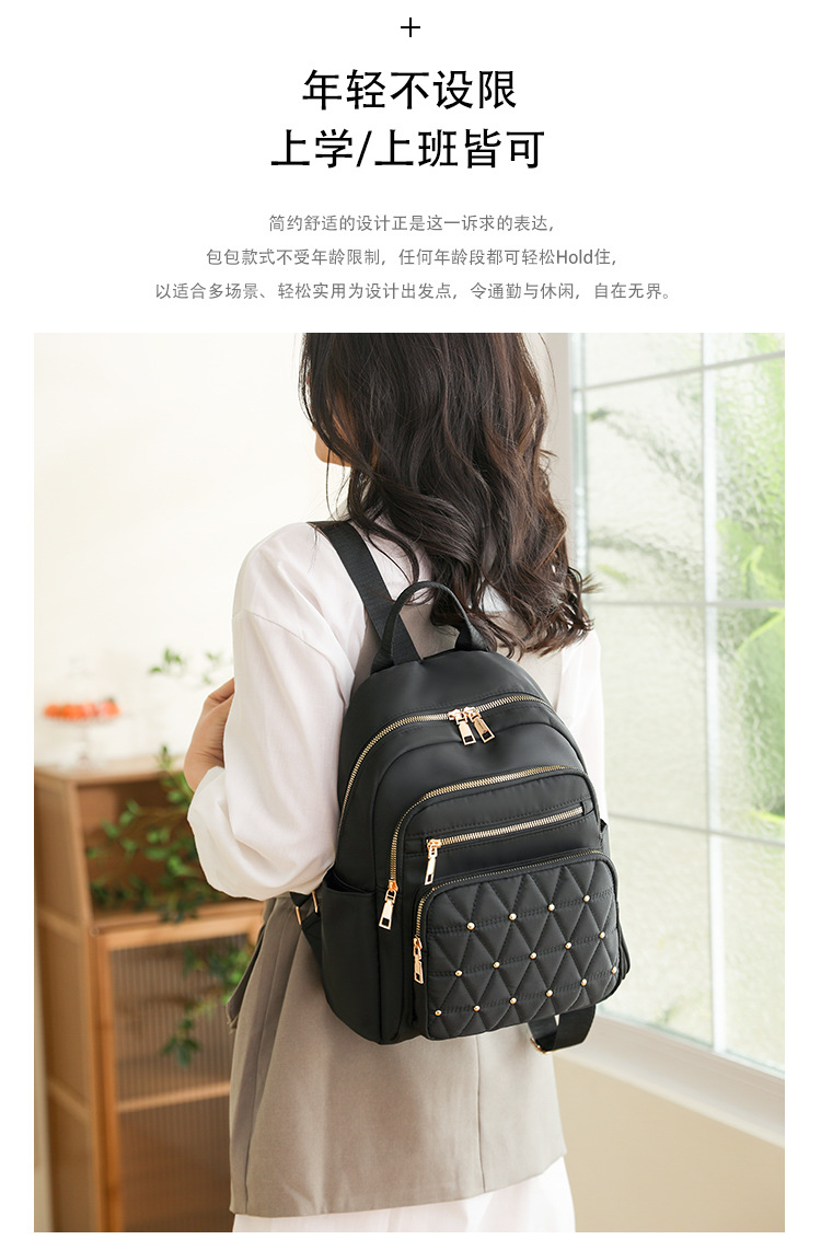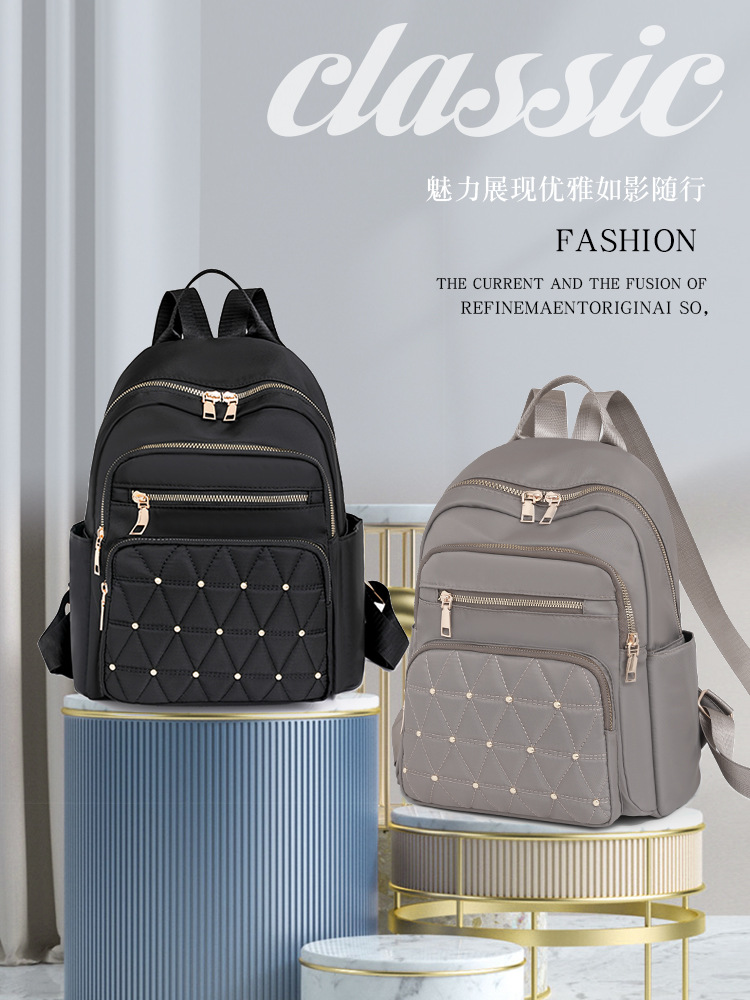 Comercio exterior al por mayor 2023 nuevas señoras casuales mochila de nailon moda remache almacenamiento al aire libre mochila de viaje marea