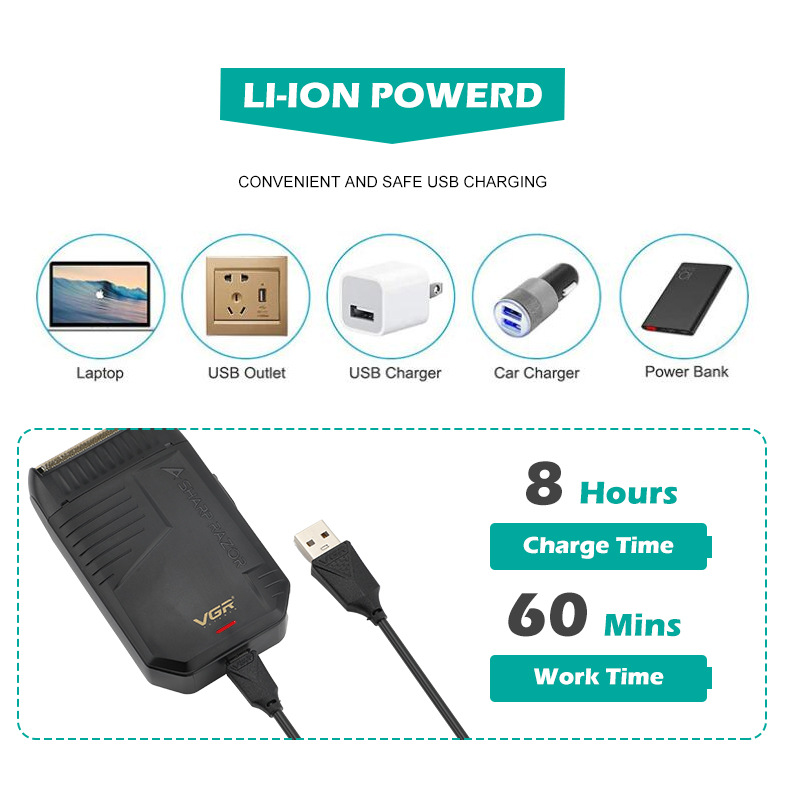 VGR375 Máquina de afeitar recíproca transfronteriza Cortapelos USB Máquina de afeitar eléctrica para hombre de viaje recargable