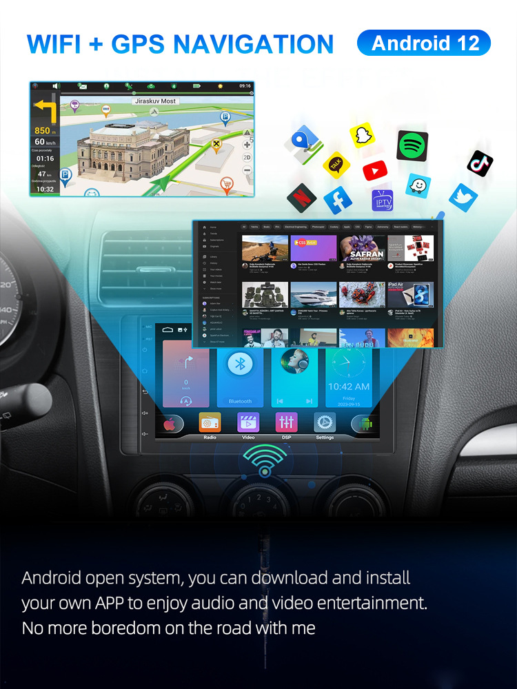 Venta caliente transfronteriza 7 pulgadas 9 pulgadas 10 pulgadas máquina todo en uno de navegación de pantalla grande para automóvil Hengchen Android Navegación universal para automóvil 8227