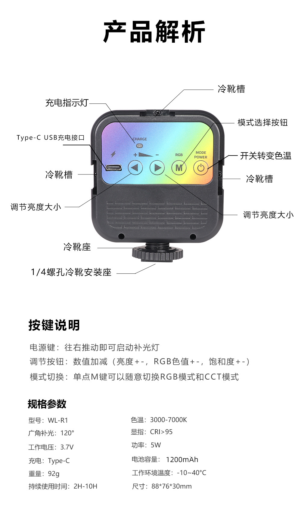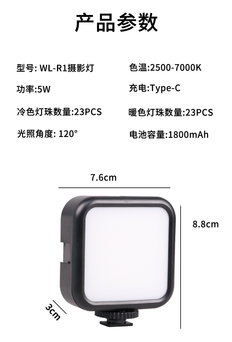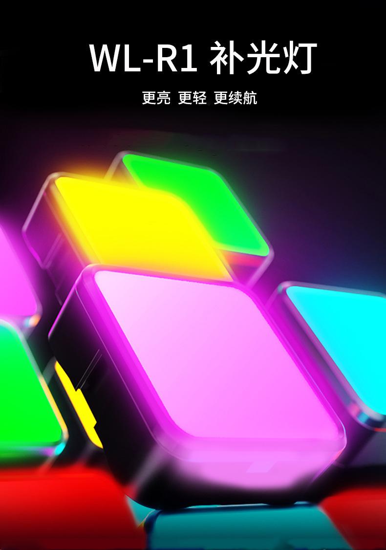 Fotografía de carga WL-R2 cuadrado mini luz LED teléfono móvil selfie RGB fotografía luz a todo color de bolsillo RGB Luz de relleno