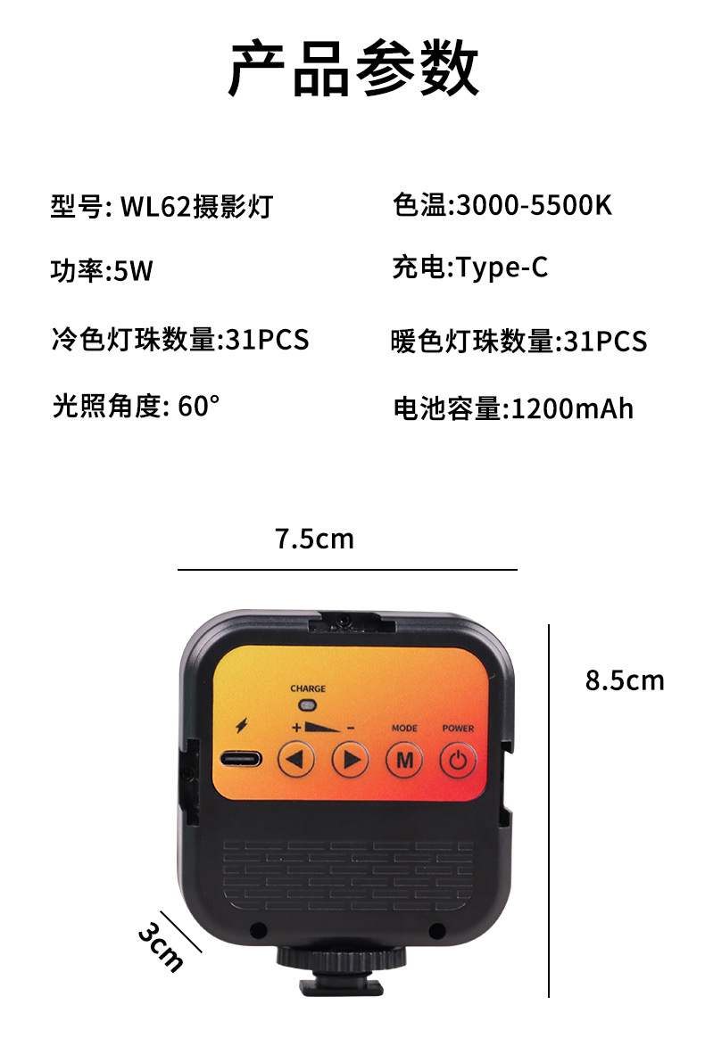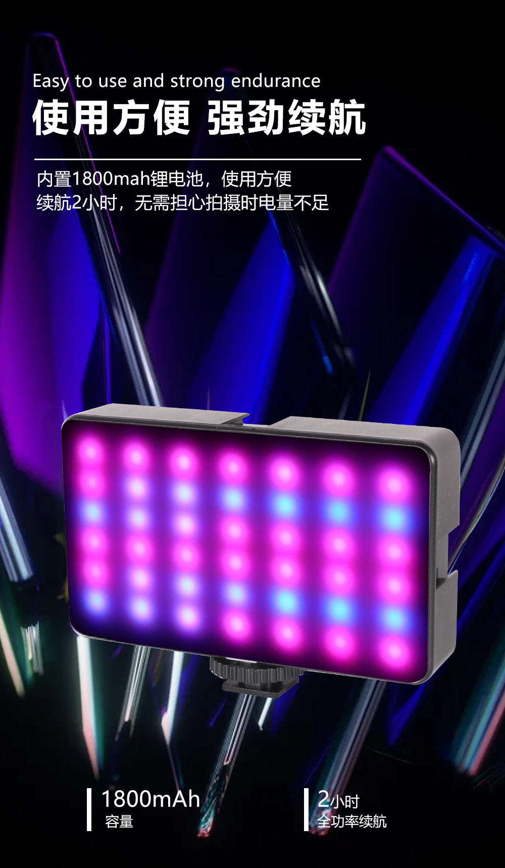 Batería rectangular de 3200 mAh de luz de relleno blanca colorida fría y cálida