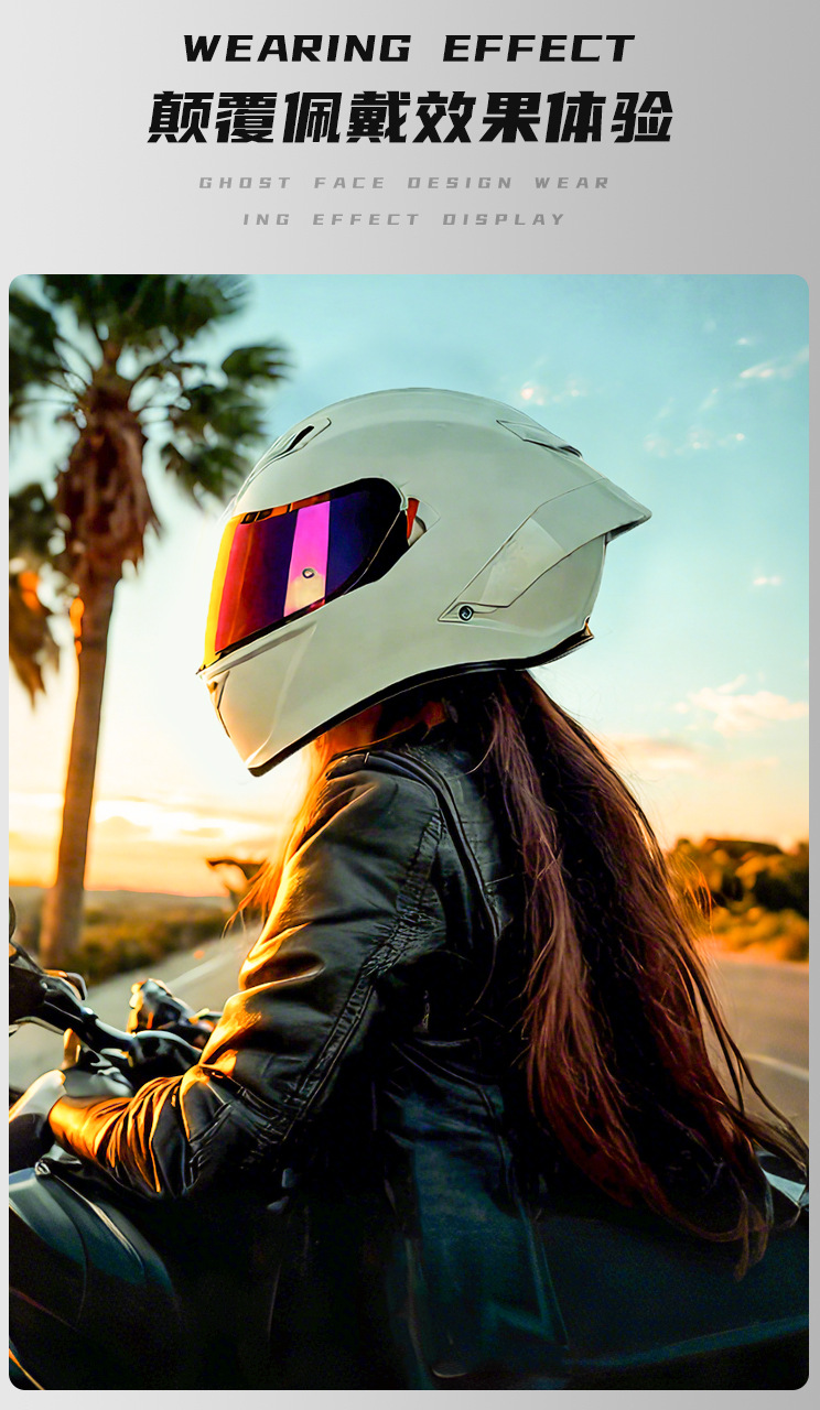 Casco de motocicleta femenino lindo coche eléctrico casco completo motocicleta lazo explosión de sonido niña de alto valor luz de luna blanca otoño e invierno