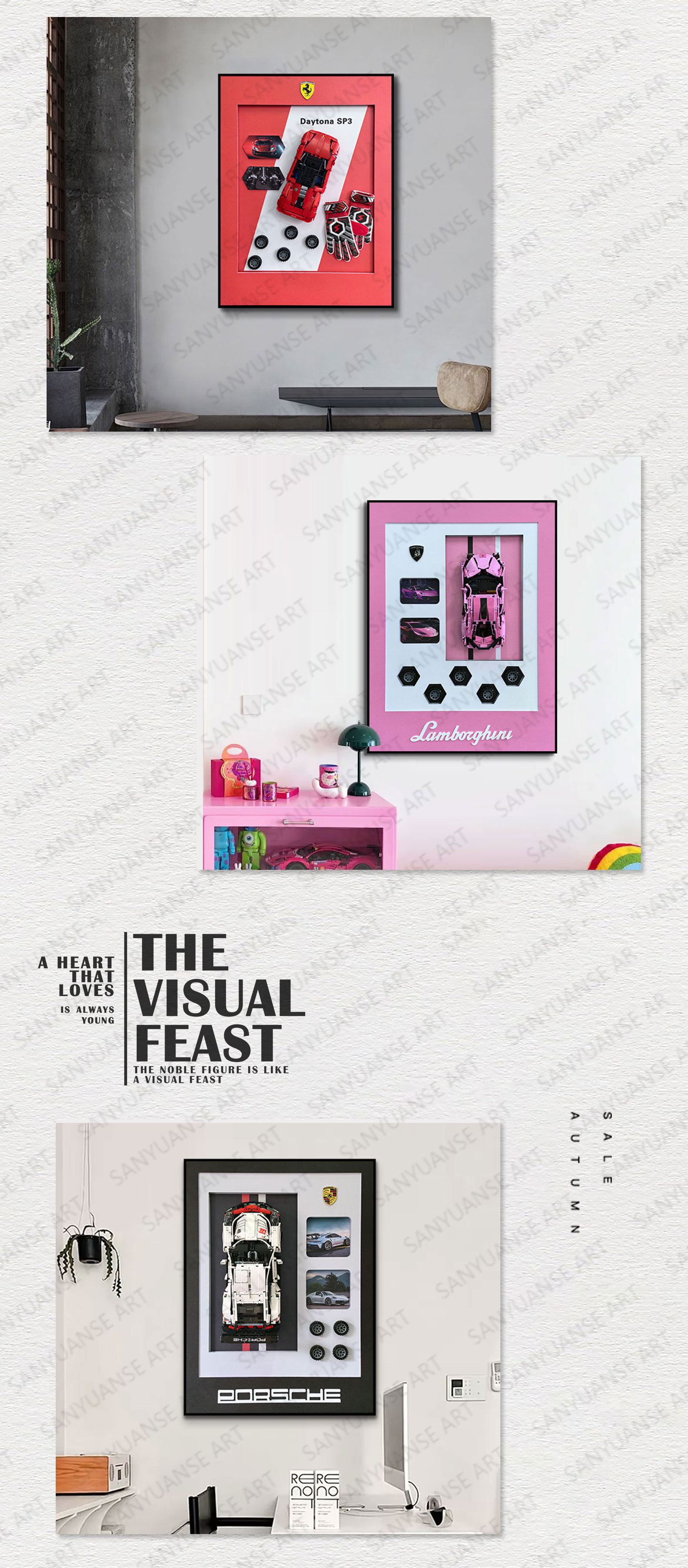 Bloques de construcción, coche, pintura colgante tridimensional, pintura decorativa transfronteriza, coche famoso, sala de estar 3D, porche, pasillo, dormitorio, pintura mural