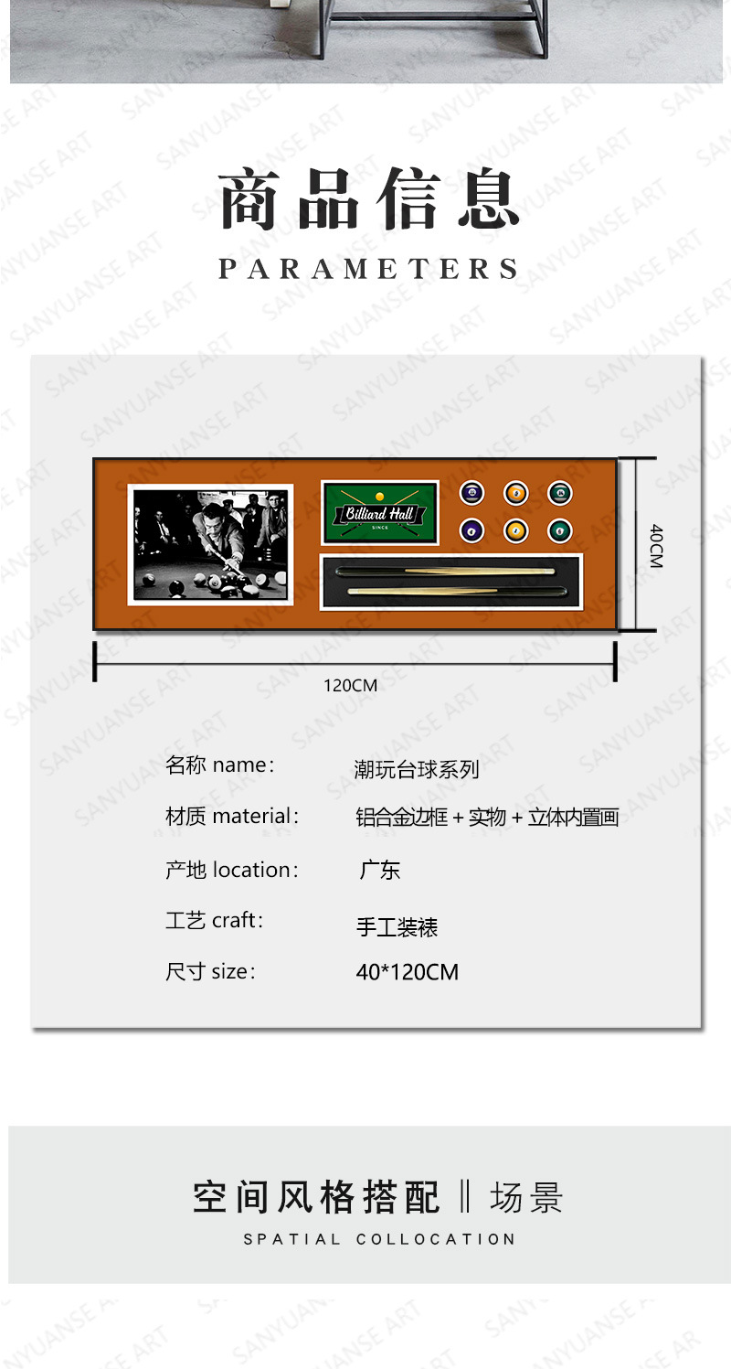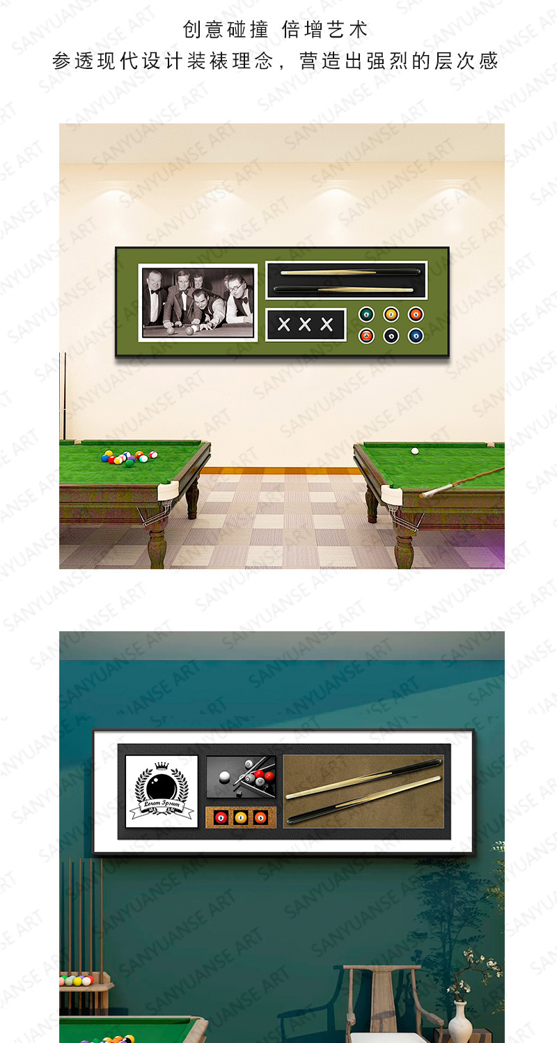 Billares decoración pintura sala de estar sofá pared de fondo tridimensional entrada física 3D pasillo sala de billar club pintura colgante