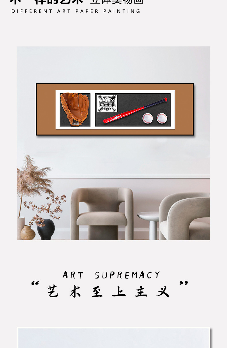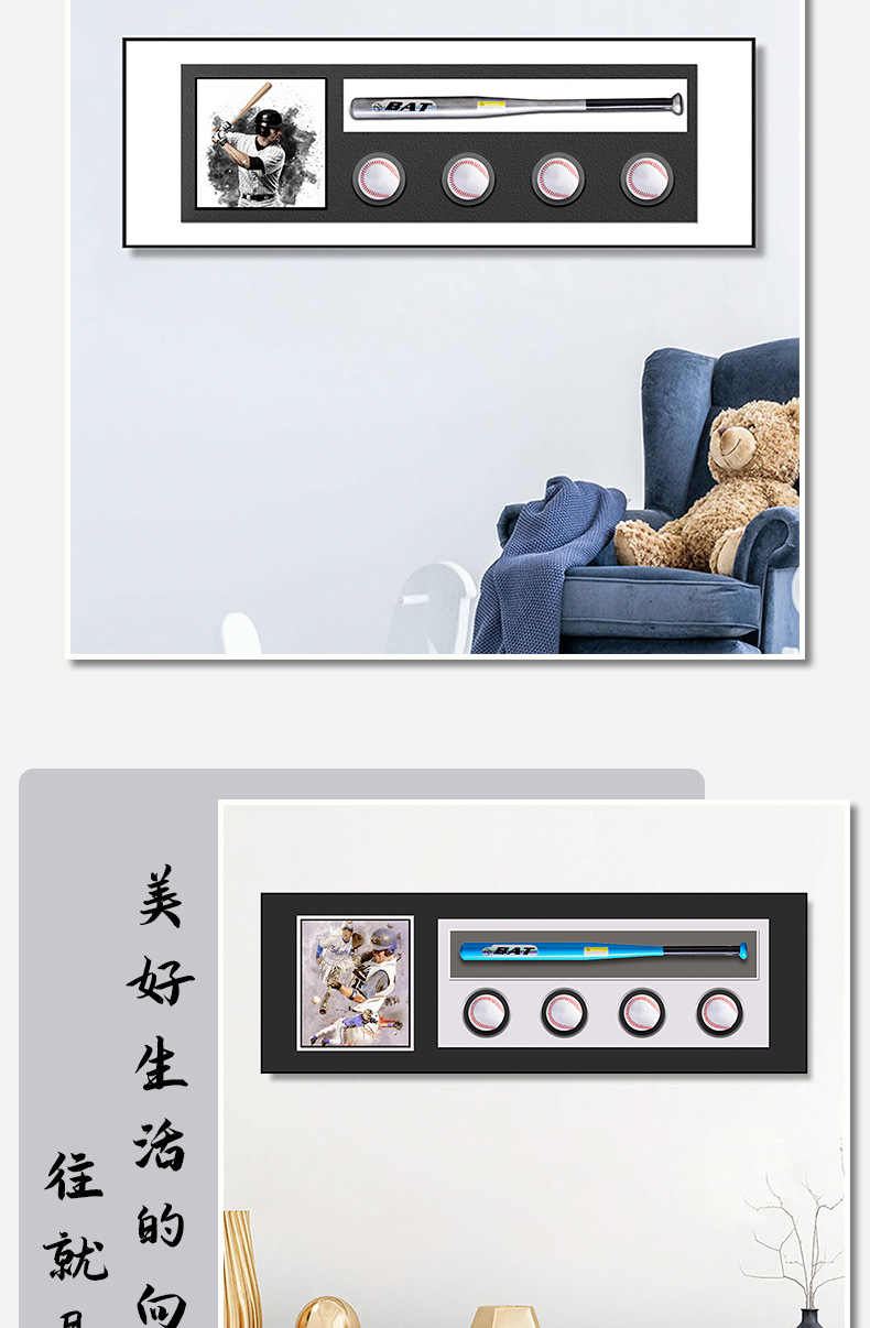 Pintura de decoración de béisbol Sala de estar Sofá Fondo Pared Pasillo Dormitorio Pintura física Entrada Sala de bolas tridimensional Pantalla Pintura colgante