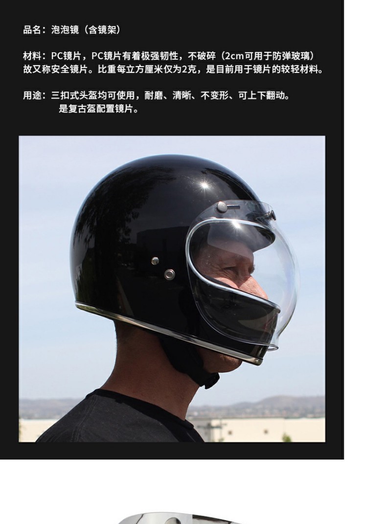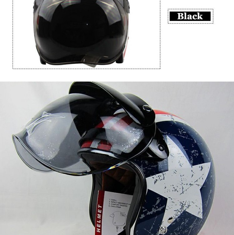 Retro casco burbuja espejo gafas 3/4 casco onda espejo medio casco a prueba de viento universal lente transparente gafas de sol