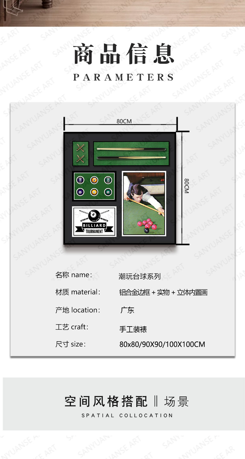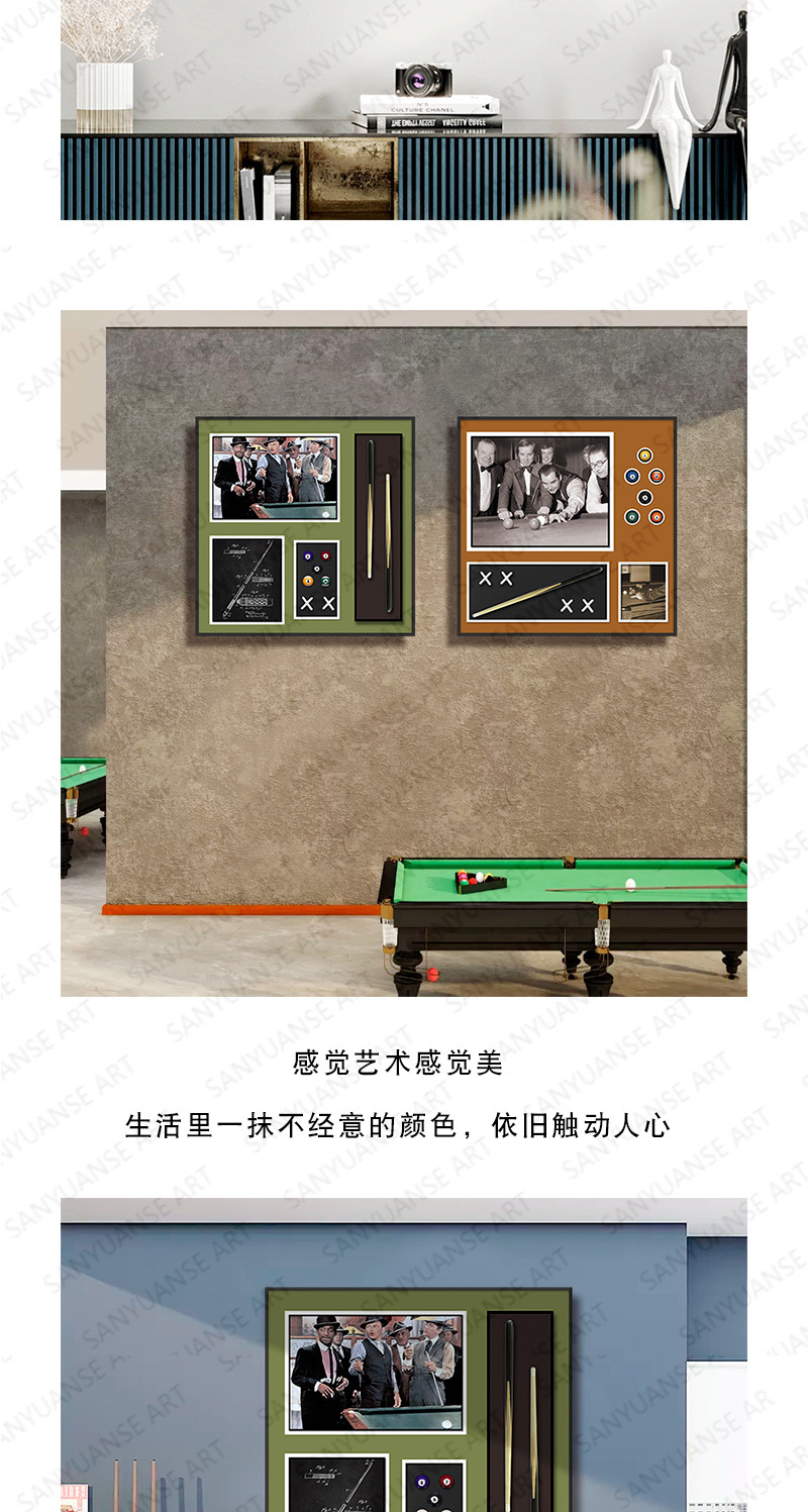 Sala de billar Pintura colgante Sala de billar tridimensional Mural Pintura de decoración de restaurante tridimensional Pintura colgante de billar