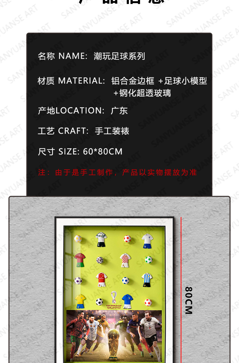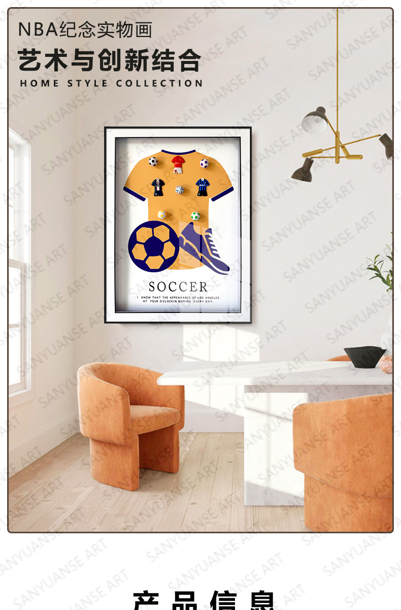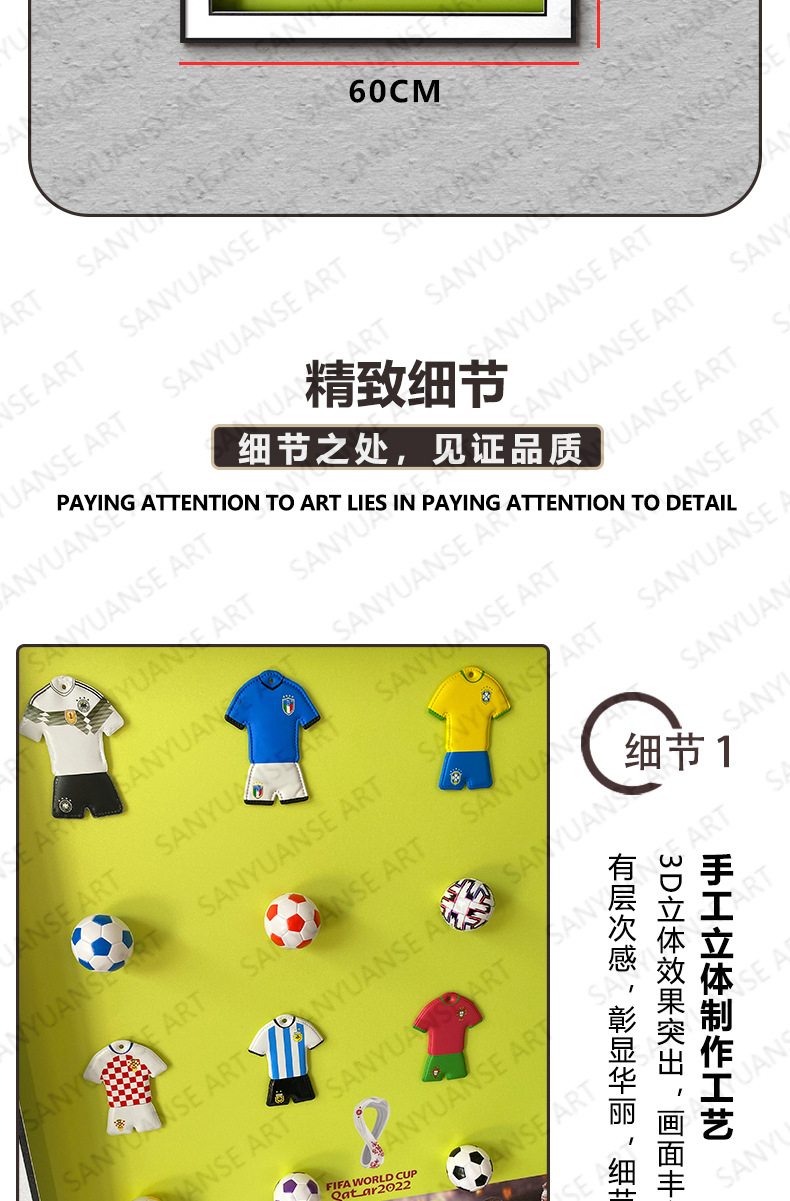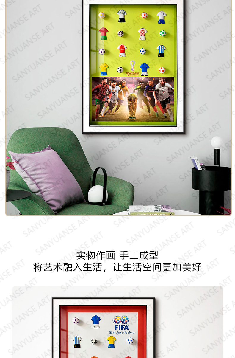 Copa del mundo de fútbol decoración de pinturas recuerdos regalos de los fanáticos dormitorio de los niños mural junto a la cama pintura física tridimensional