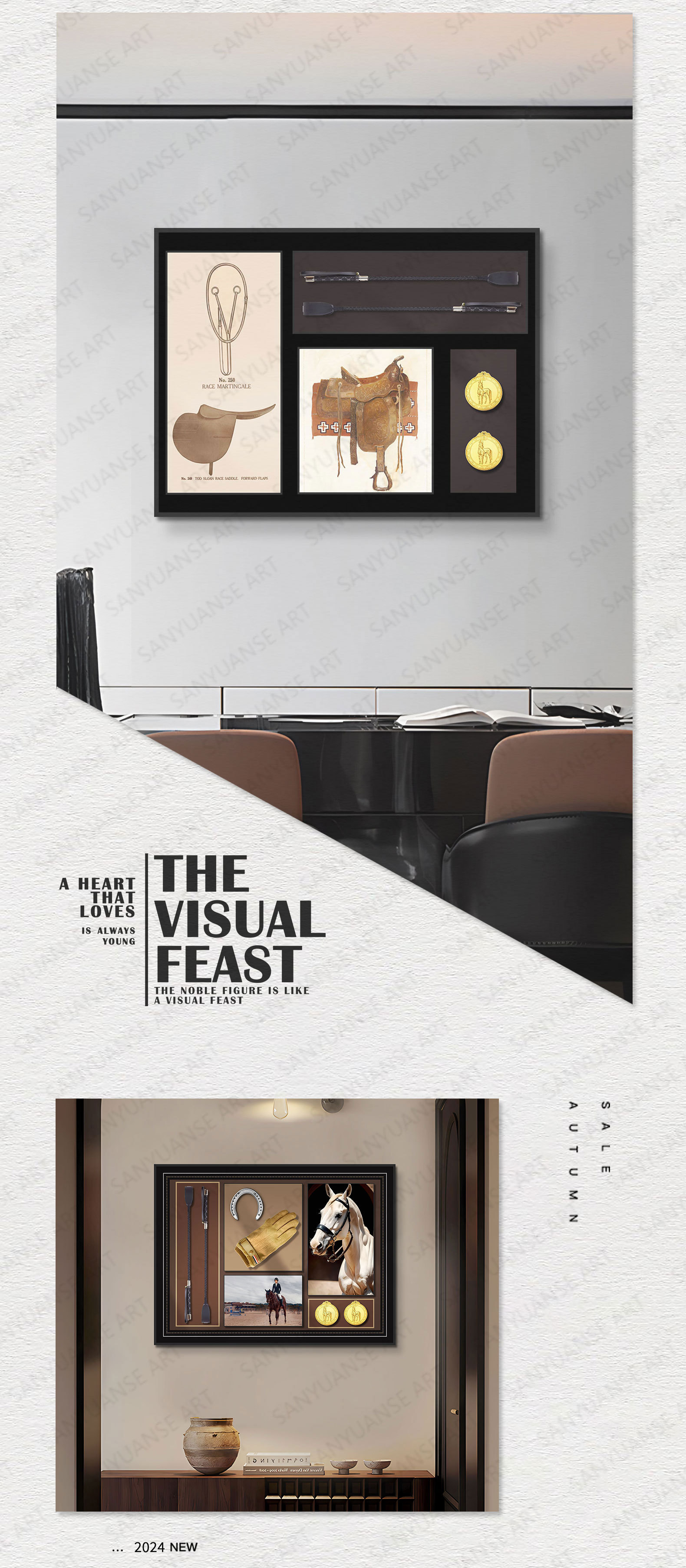 Instalación física tridimensional, pintura colgante, sala de modelos, entrada, pintura decorativa, sala de estar, mural retro europeo, arte creativo ecuestre