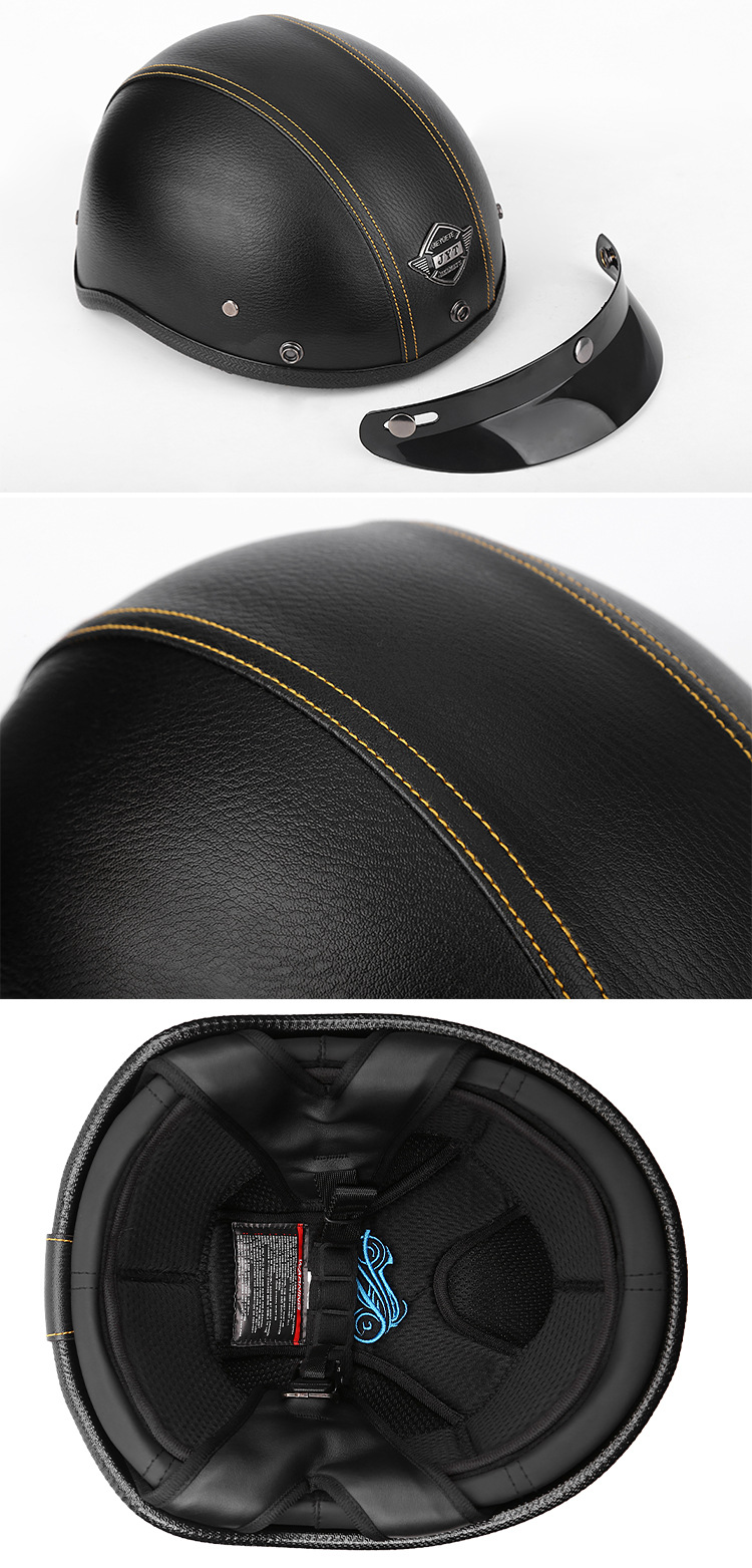 Casco de bicicleta eléctrica JYT estilo retro hecho a mano de cuero PU, medio casco unisex para todas las estaciones