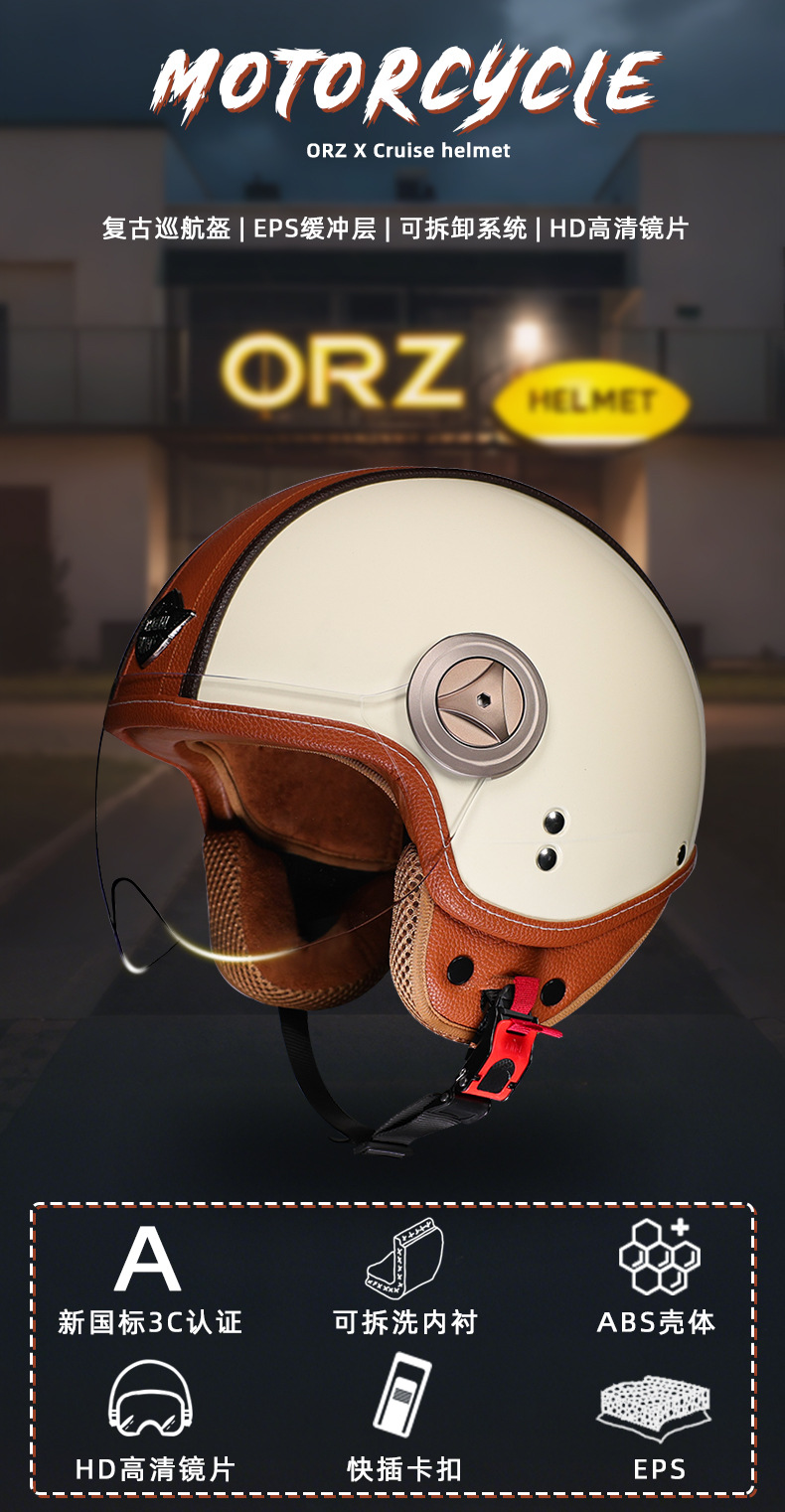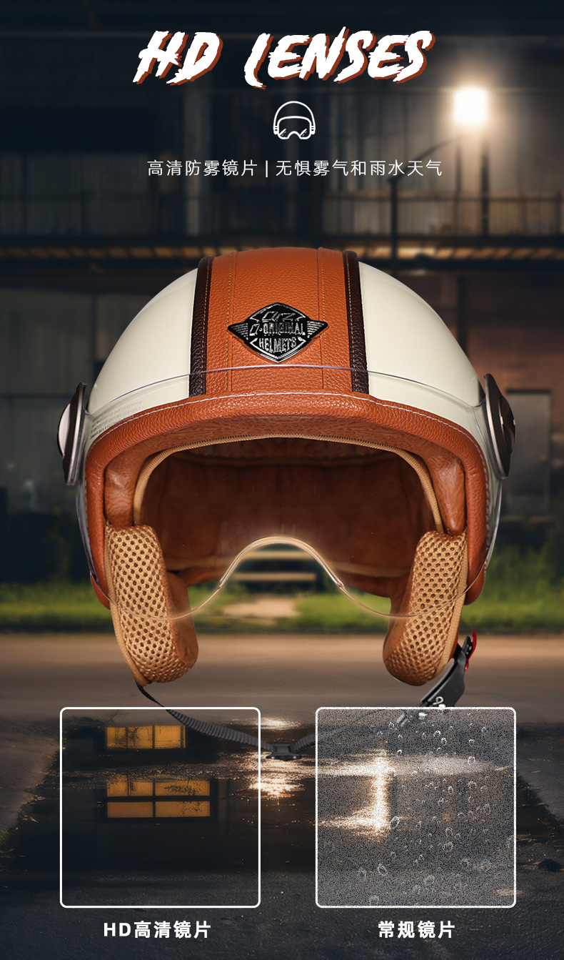 Nuevo casco retro certificado según el nuevo estándar nacional con espejo interior, apto para todas las estaciones, unisex, tamaño tres cuartos, para motocicleta y vehículo eléctrico.