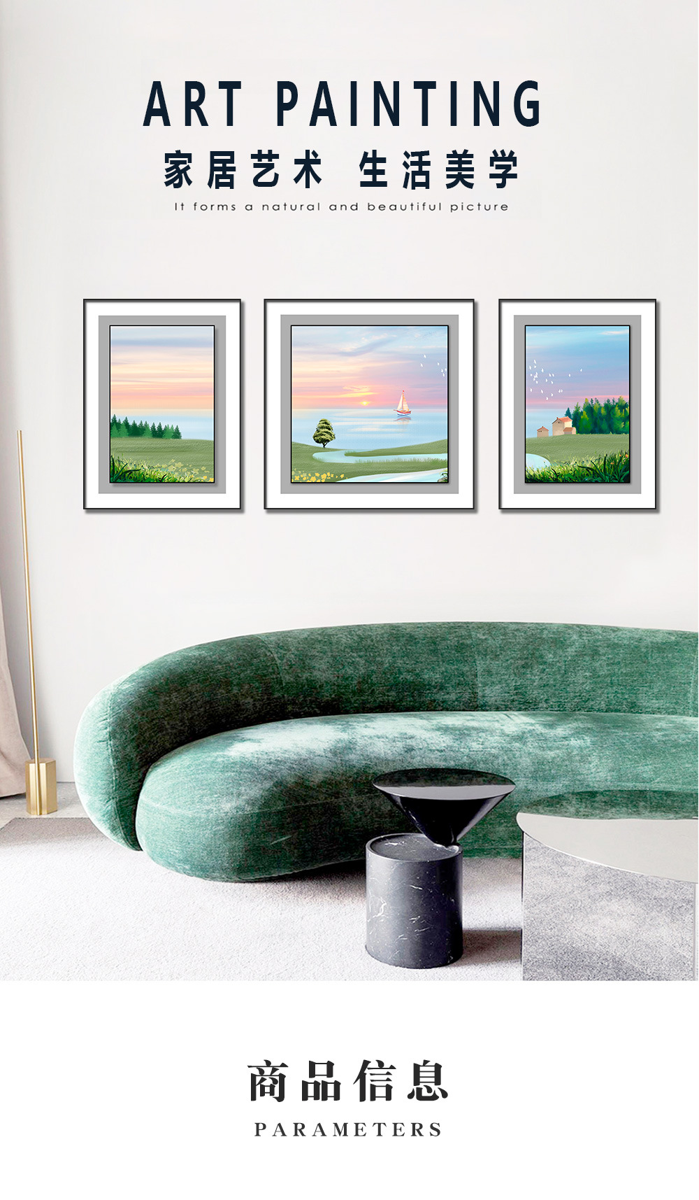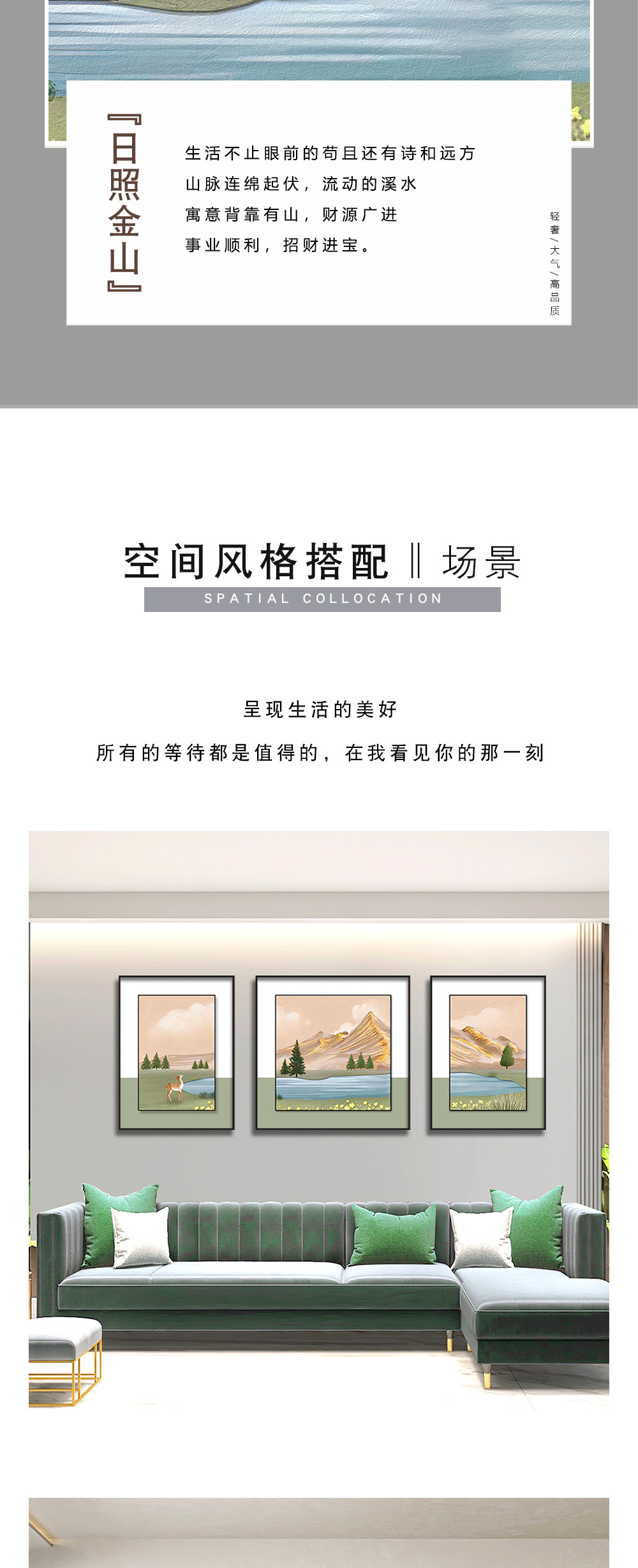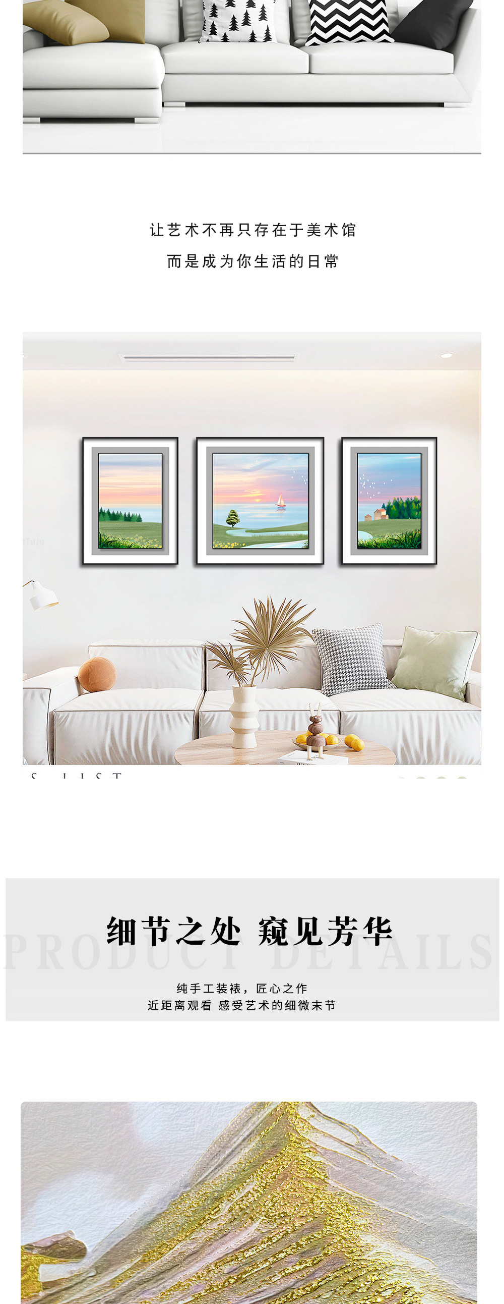 Sofá pared de fondo pintura triple tallada textura de cuero bronceado paisaje pintura decorativa sala de estar sofá pared de fondo