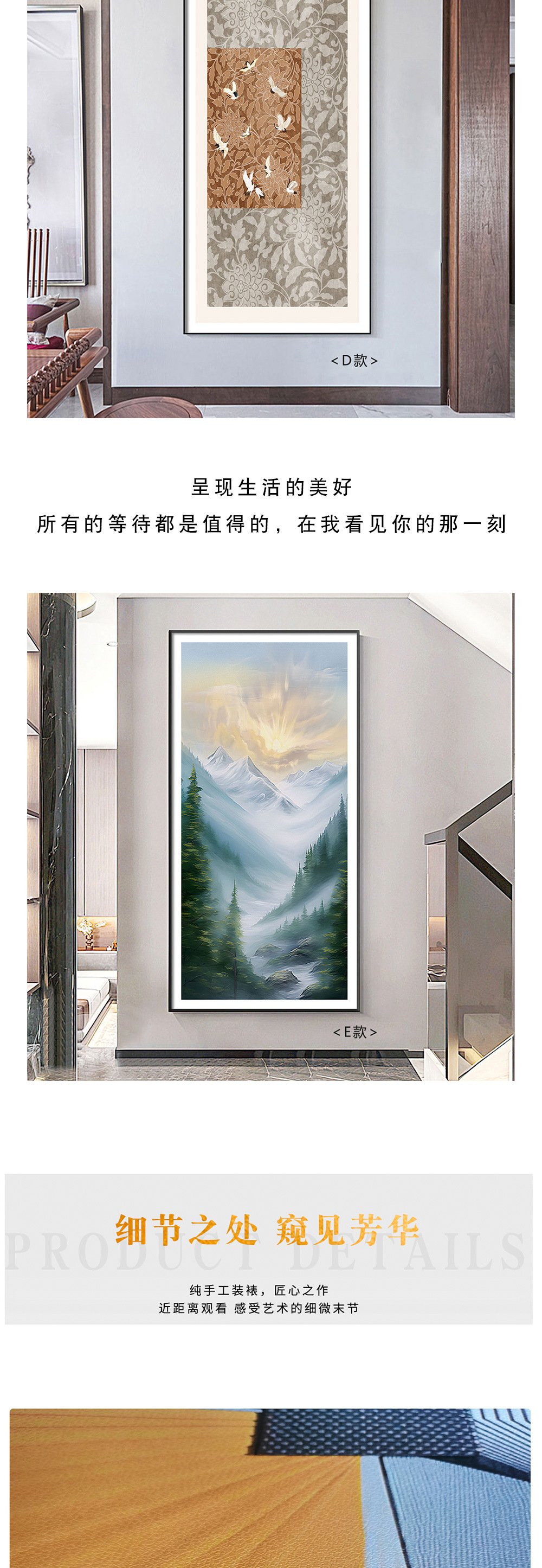 Pintado decorativo de entrada Pasillo minimalista moderno Pasillo vertical Sala de estar frente a la puerta Pintado grande al final del pasillo Pintura colgante de cuero