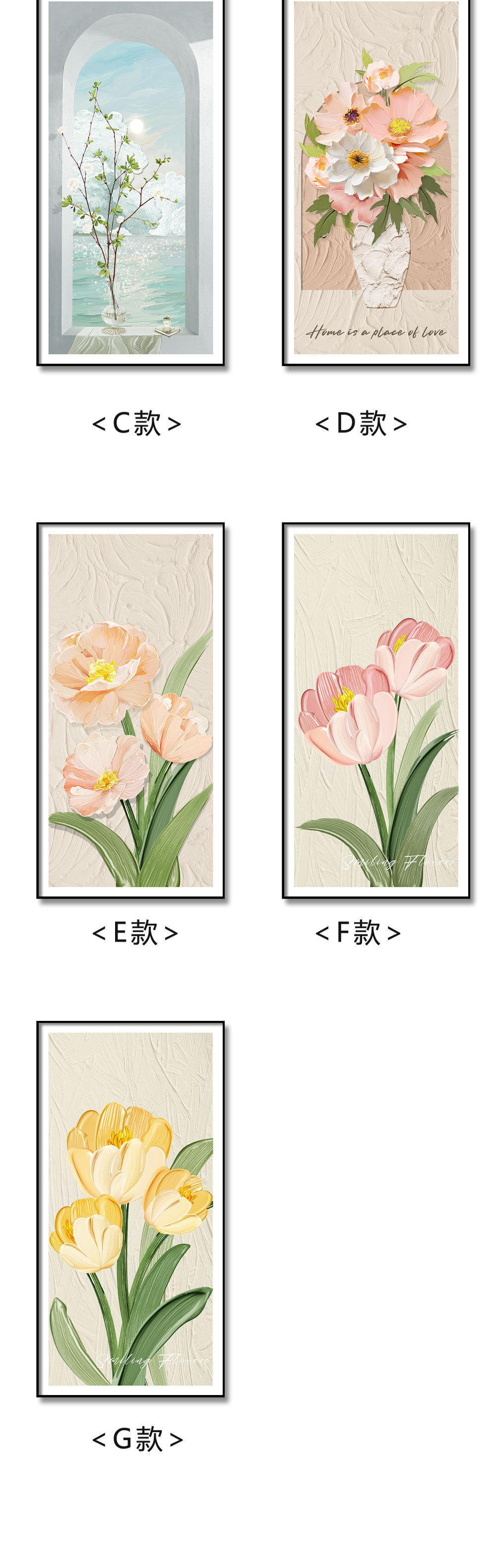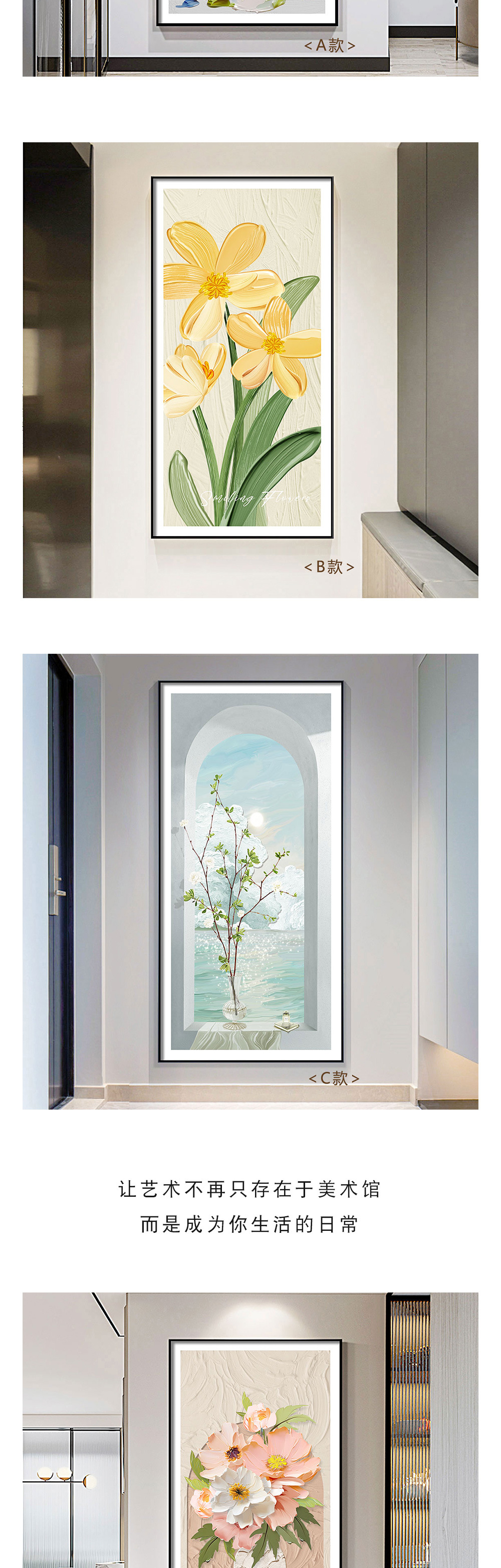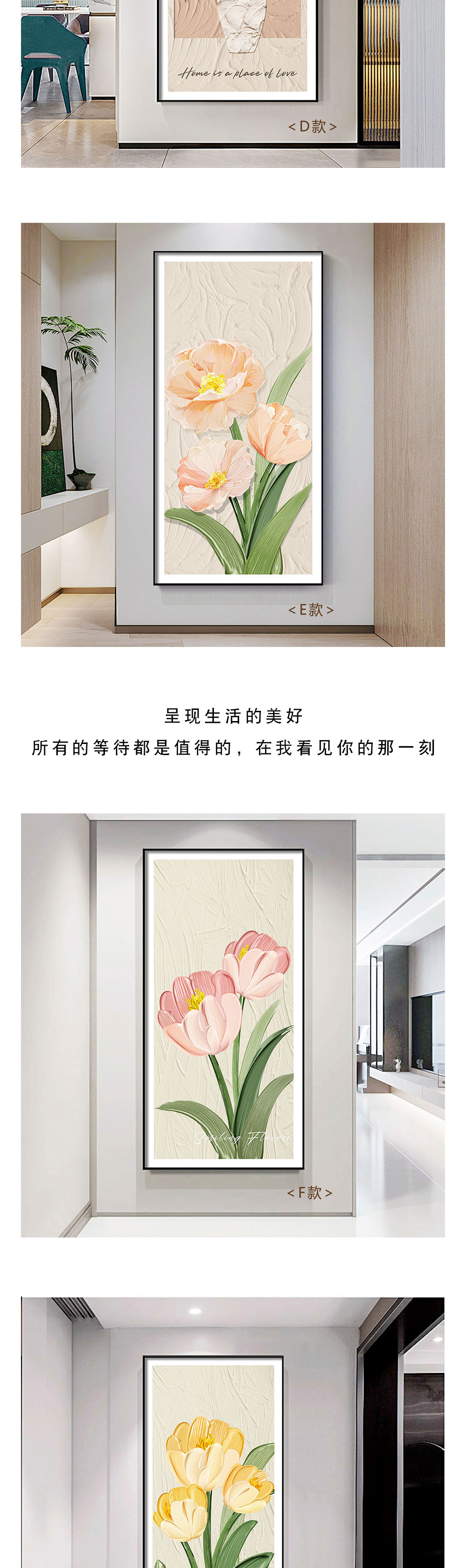 Entrada decoración pintura flor pintura al óleo pasillo minimalista moderno pasillo pasillo vertical sala de estar frente a la puerta pasillo final gran pintura