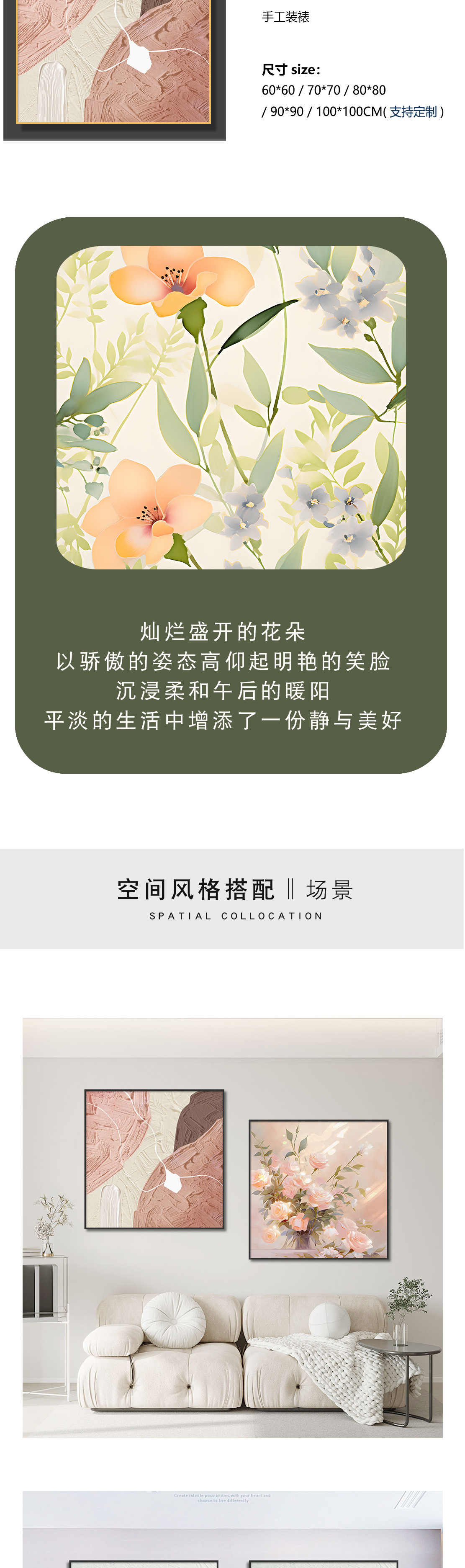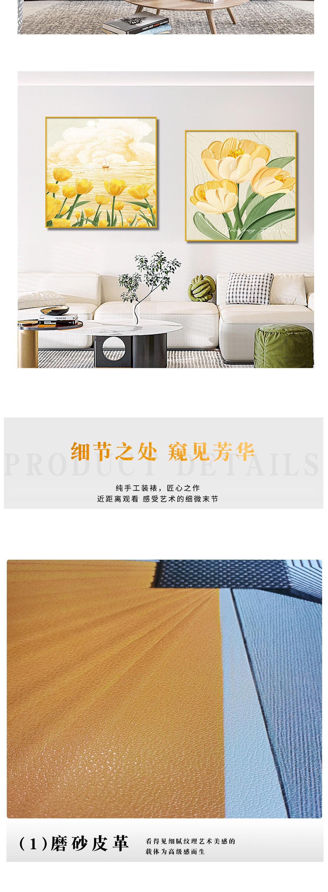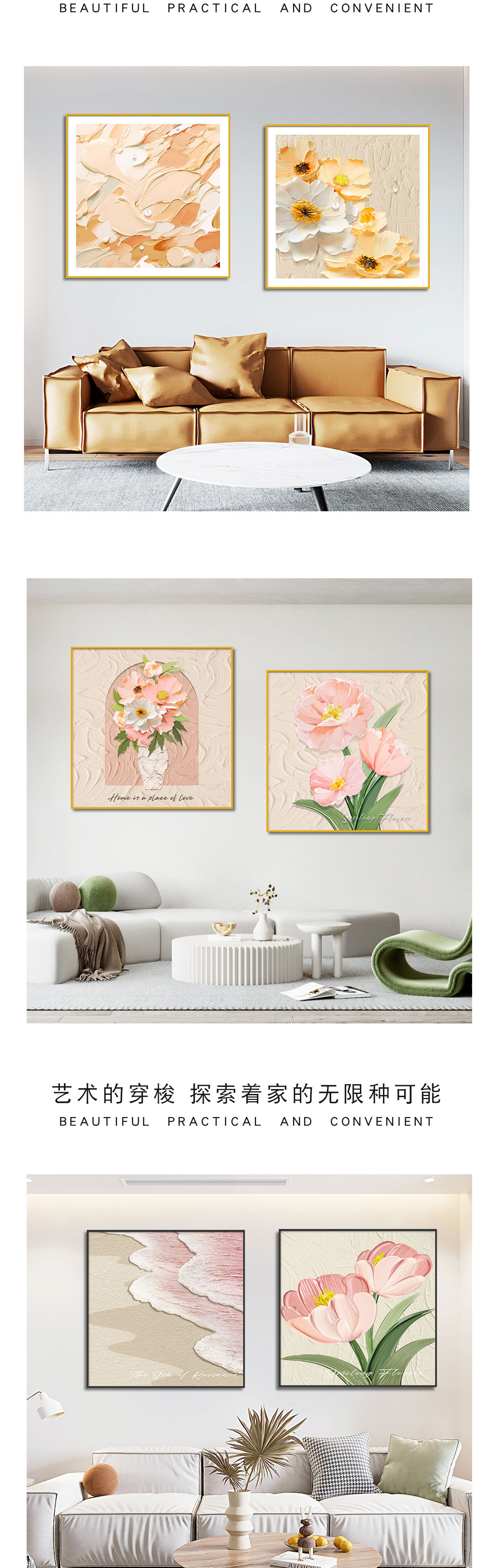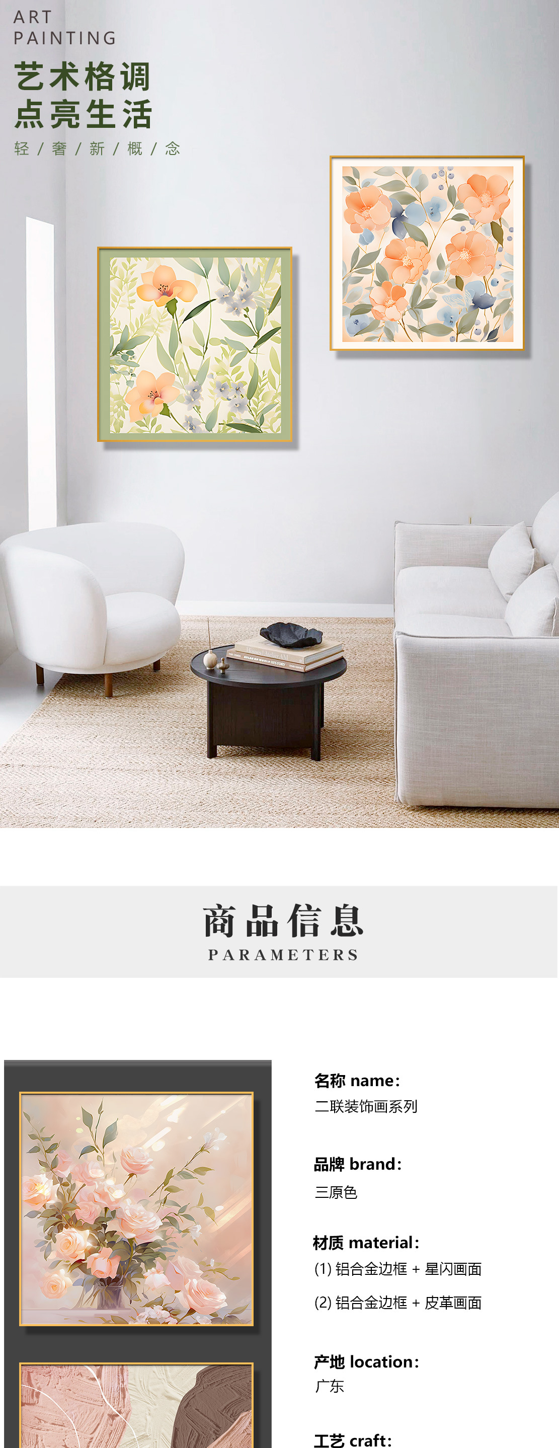 Cuadrado restaurante pintura decorativa flor minimalista moderna pintura colgante de dos partes pintura flash de estrella de cuero