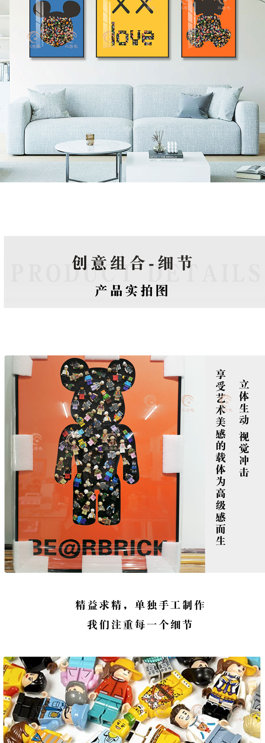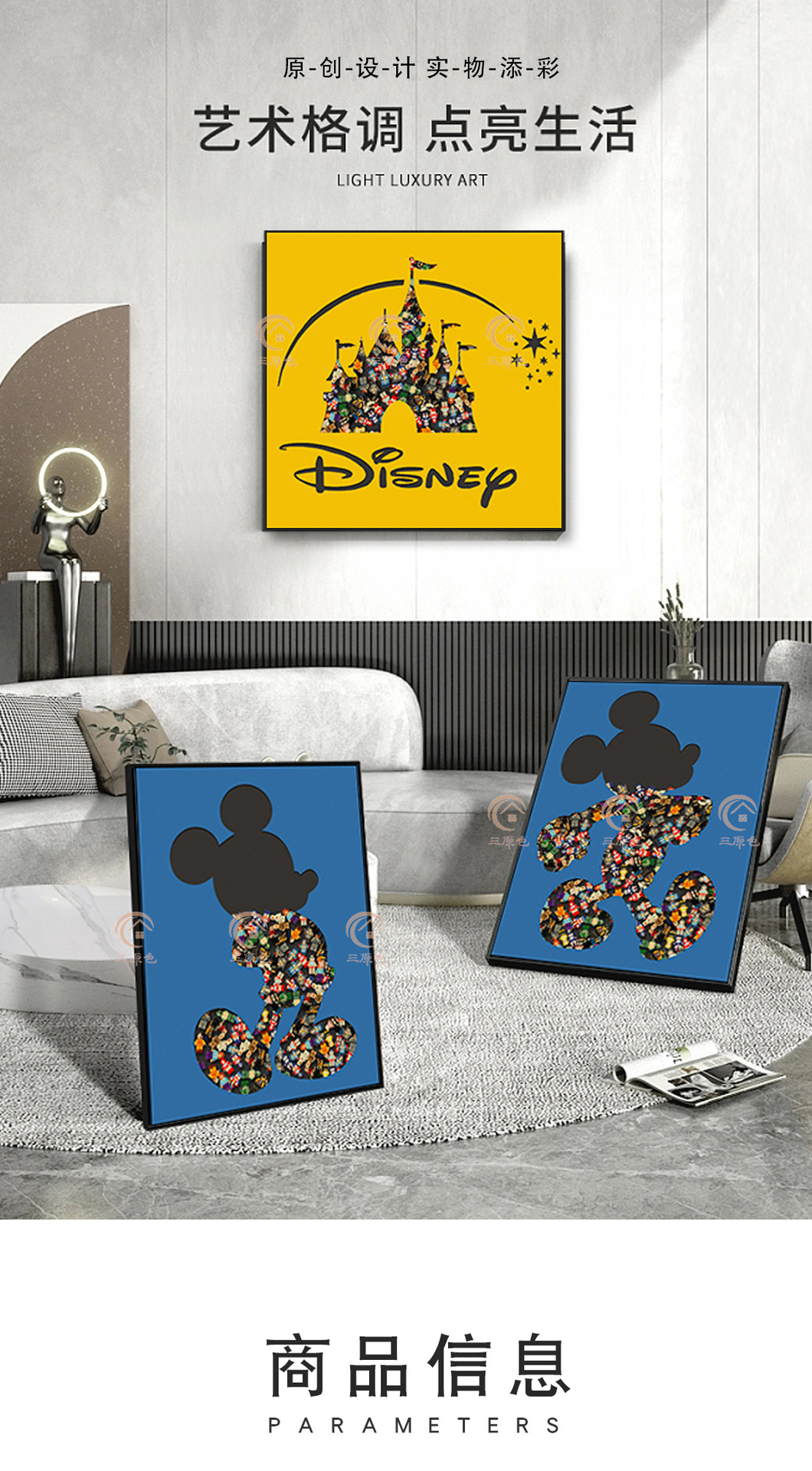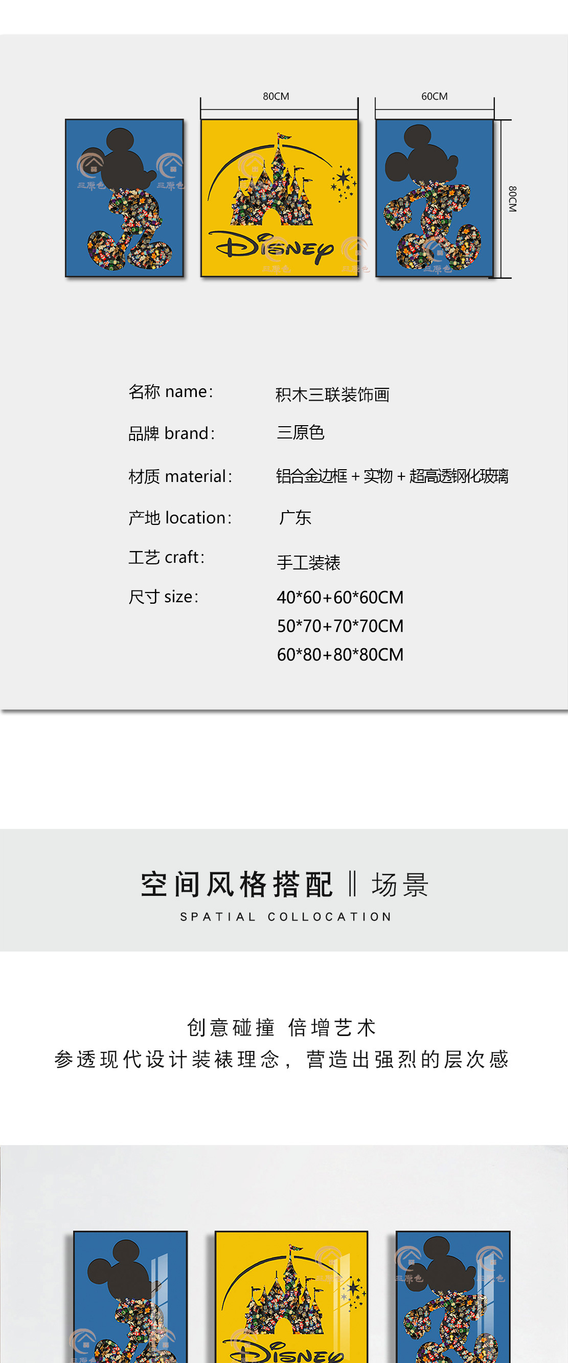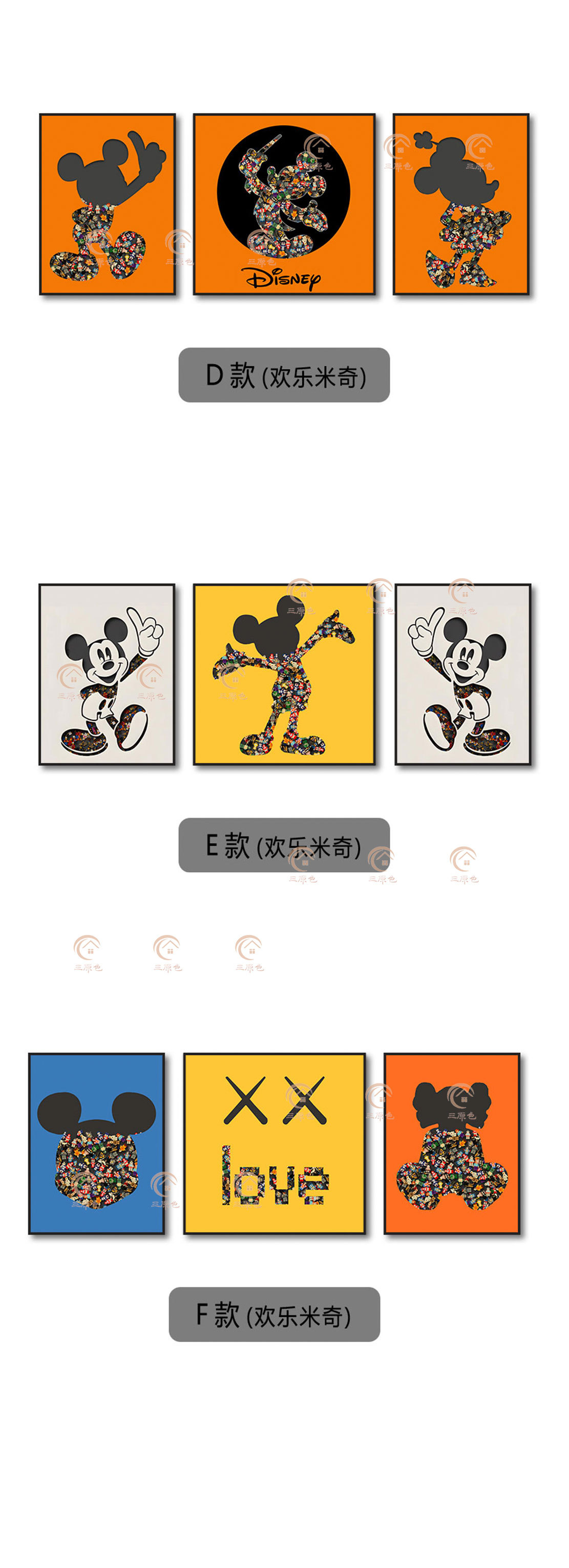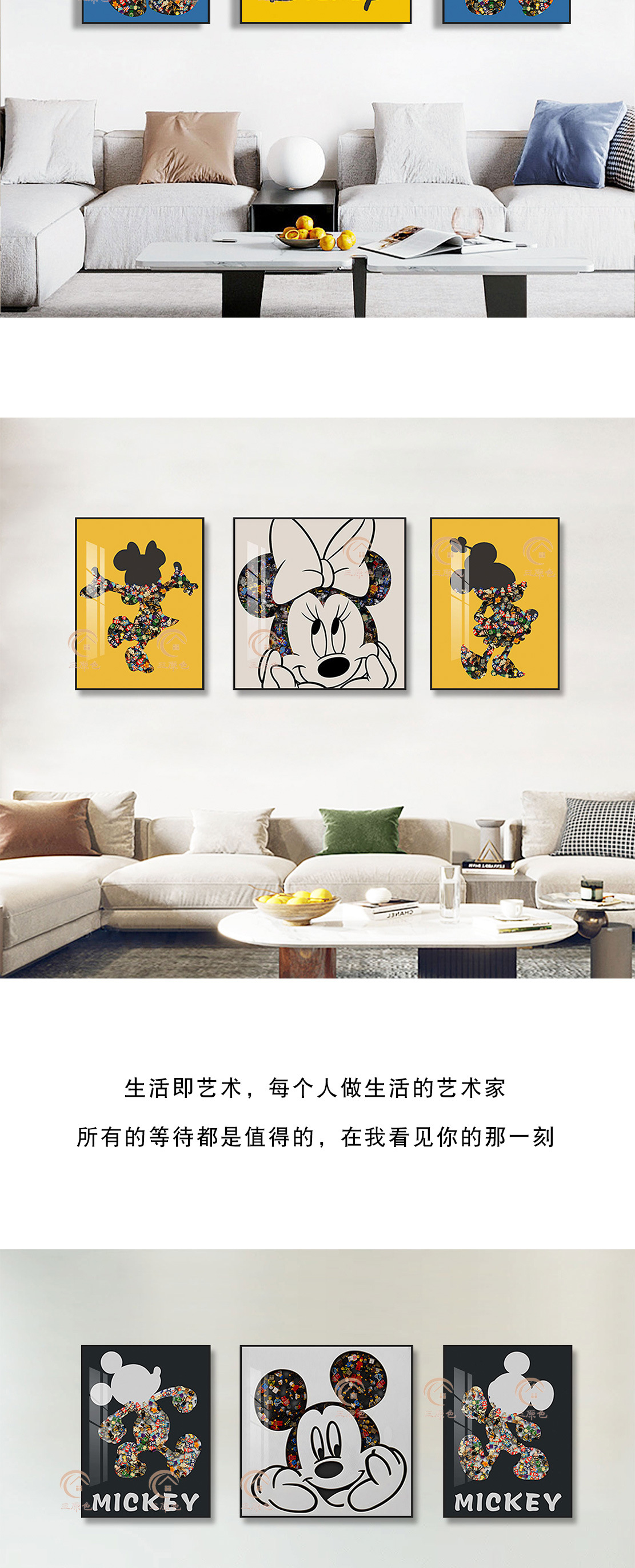 Lego ladrillo pintura sala de estar triple pintura decorativa bloques Mickey pintura física dormitorio dibujos animados de los niños Mickey Mouse colgando
