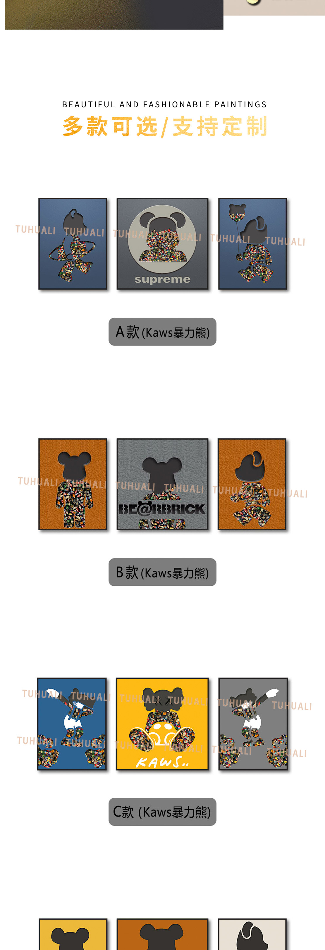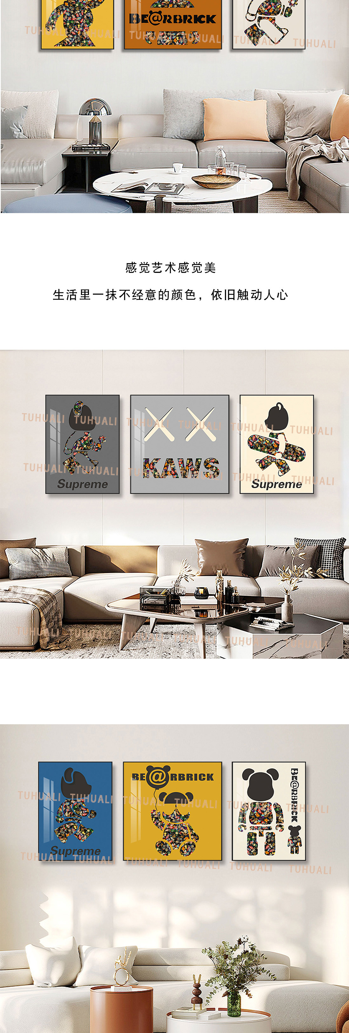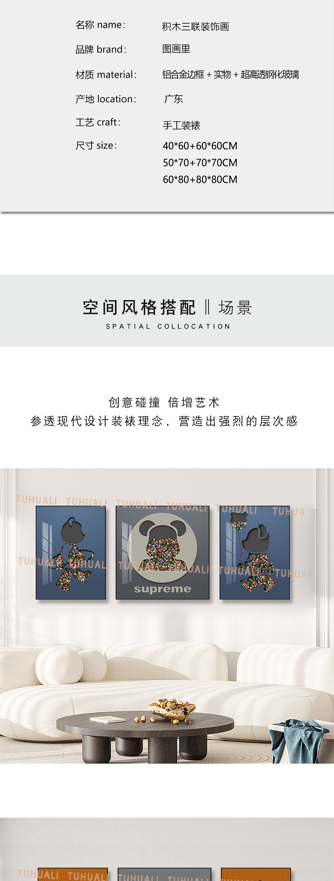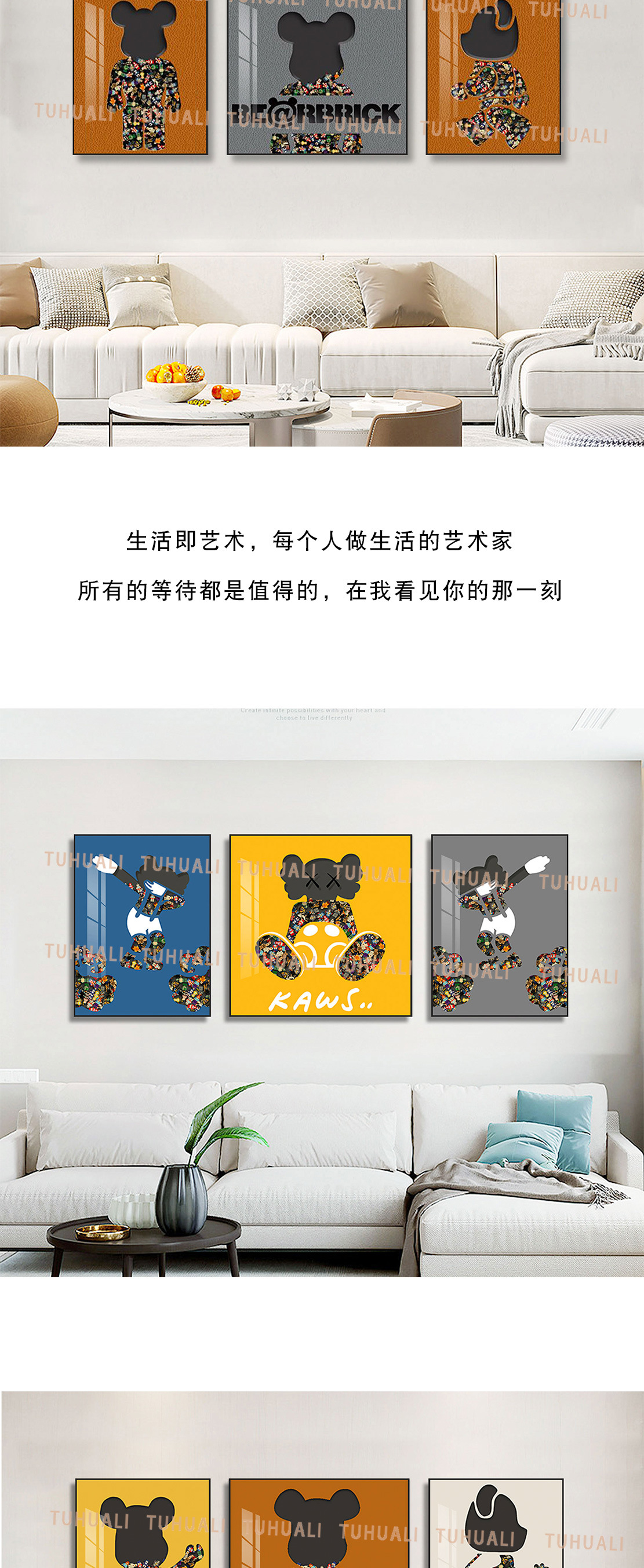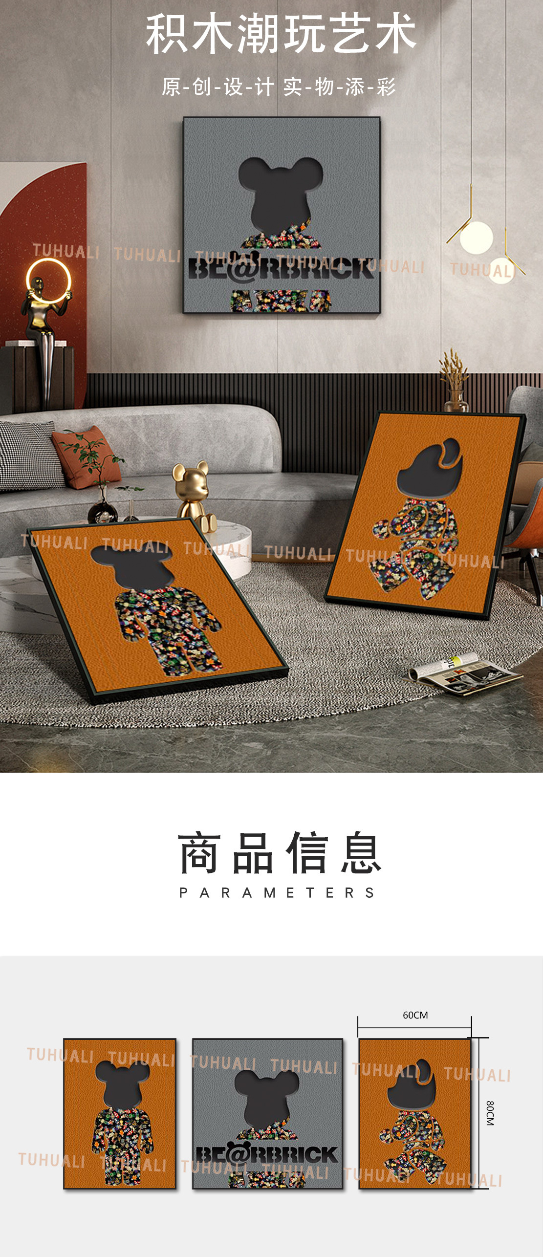 Bloques de construcción de Lego pintura real sala de estar triple pintura decorativa sofá fondo de pared explosivo oso dormitorio niños dibujos animados colgando pintura