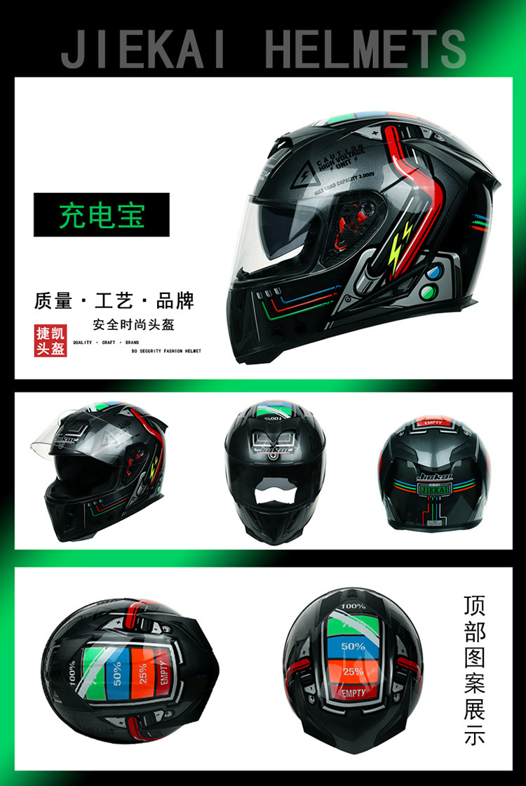 JIEKAI coche eléctrico bicicleta casco hombres y mujeres casco completo cuatro estaciones doble espejo bluetooth personalidad casco gris mentira carrera
