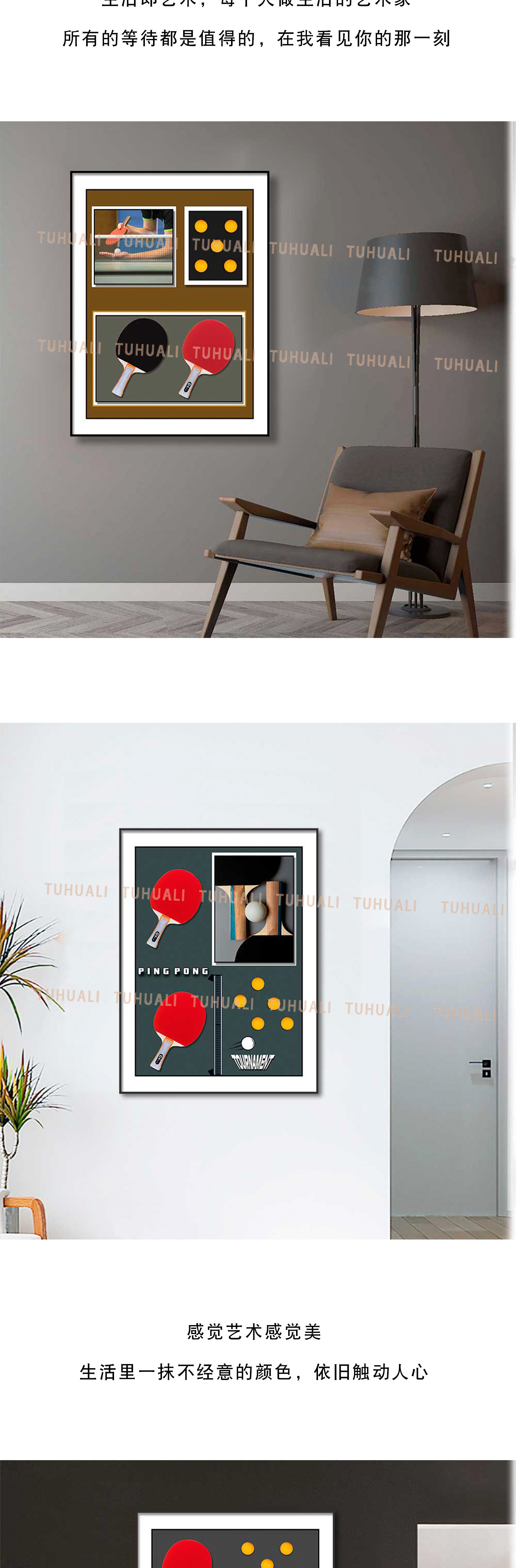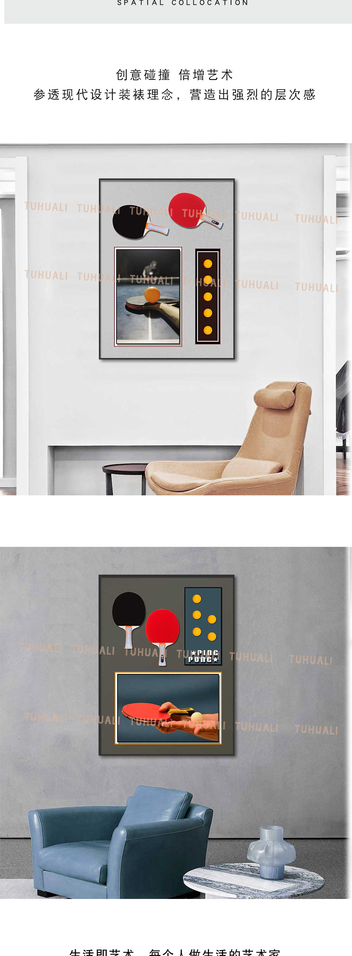 Tenis de mesa colgando pintura sofá Fondo pared bádminton tridimensional real pintura decorativa pasillo corredor mural