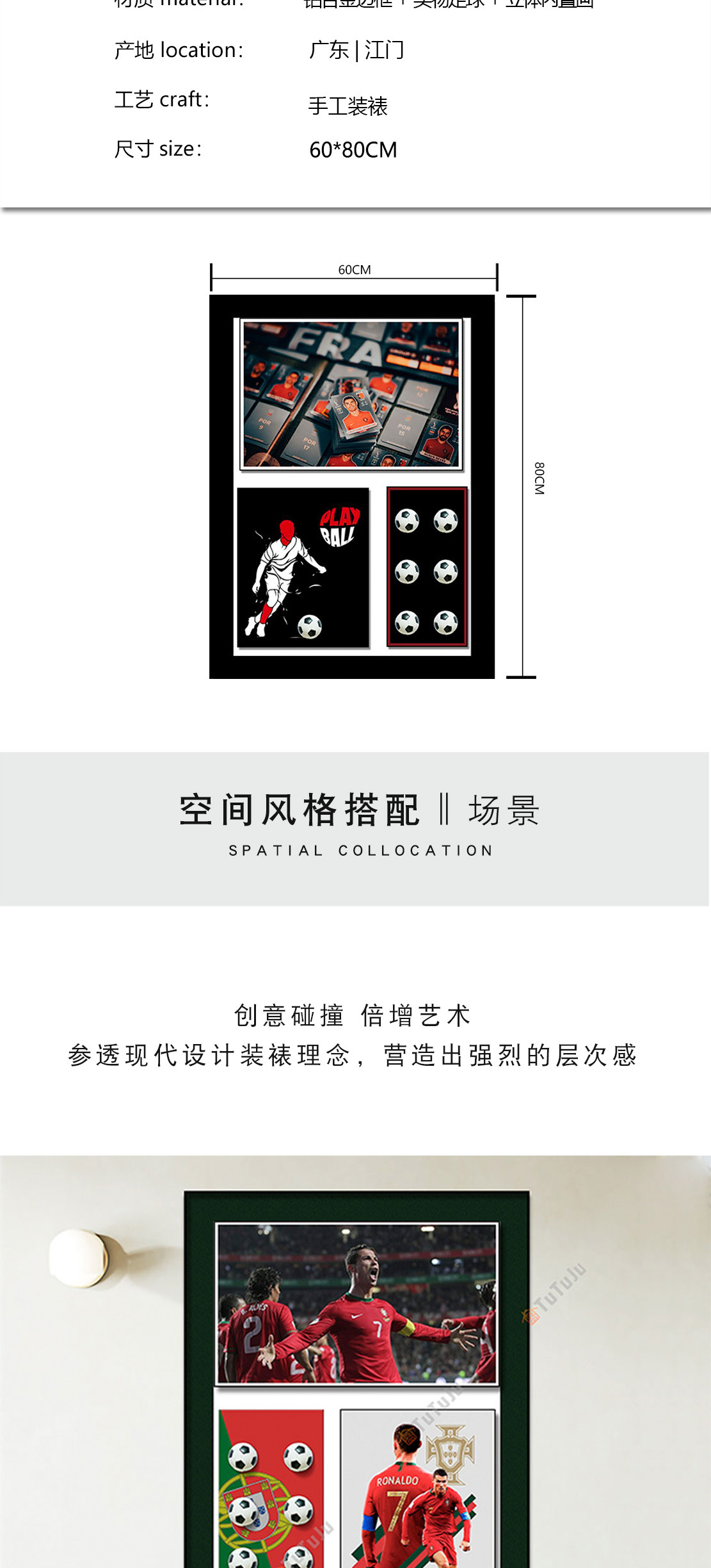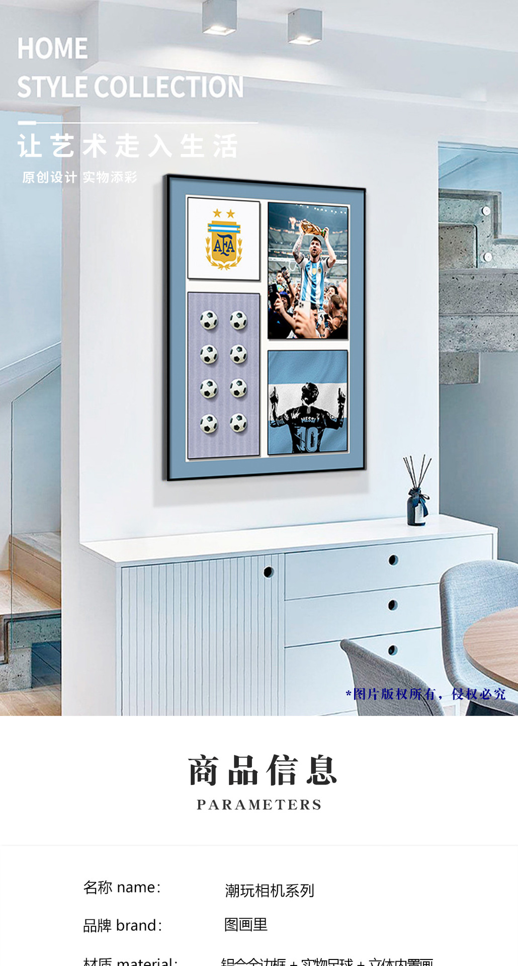 Fútbol pintura decorativa Massey estrella colgante pintura sala de estar pintura decorativa moda tridimensional real pintura pasillo mural