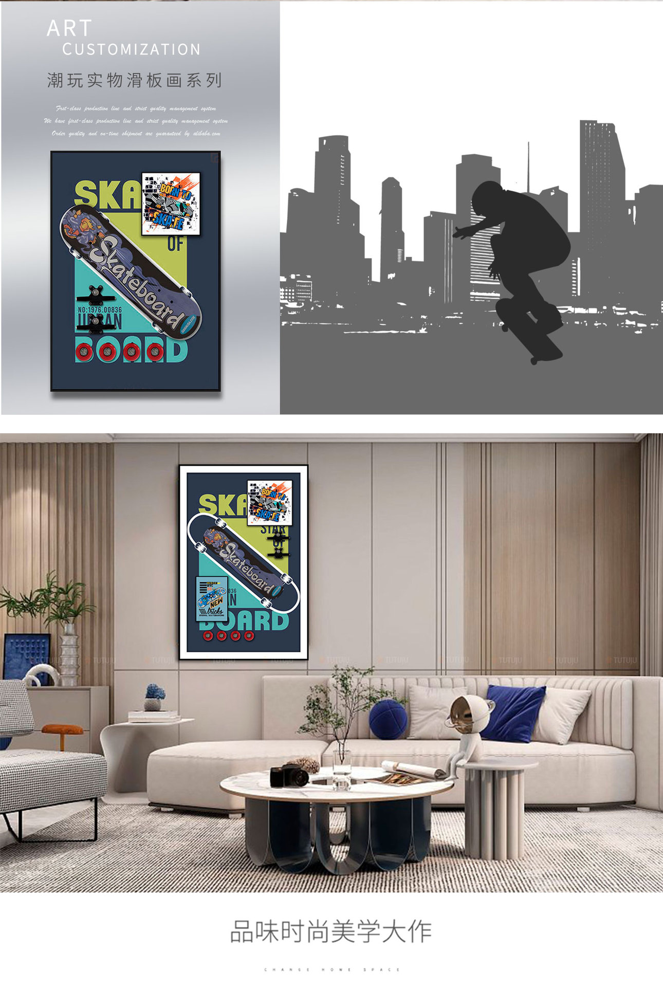 Monopatín pintura decorativa Tridimensional juego de moda mural pintura hecha a mano sala de estar pintura decorativa comedor dormitorio pasillo colgante pintura