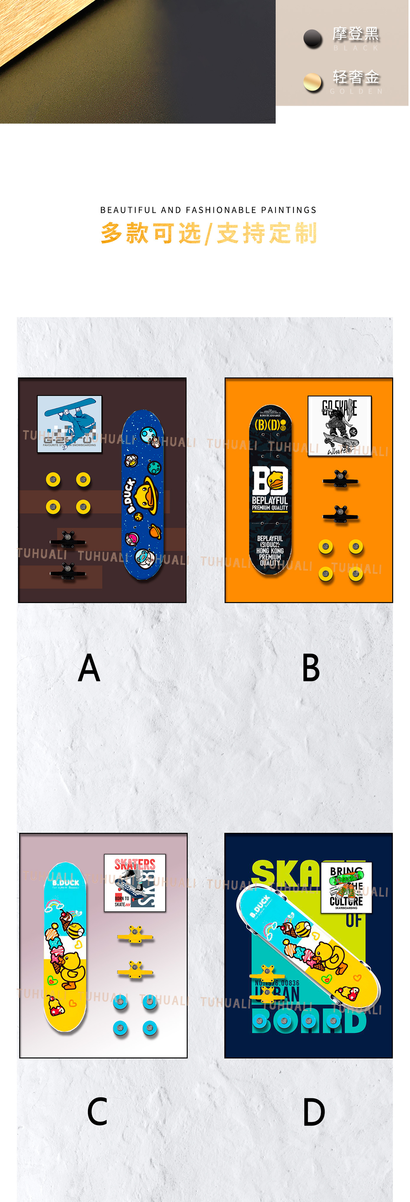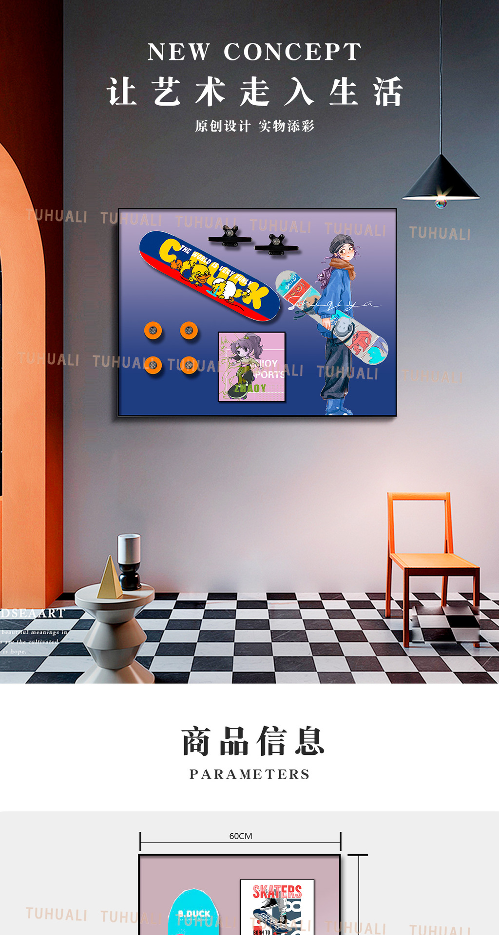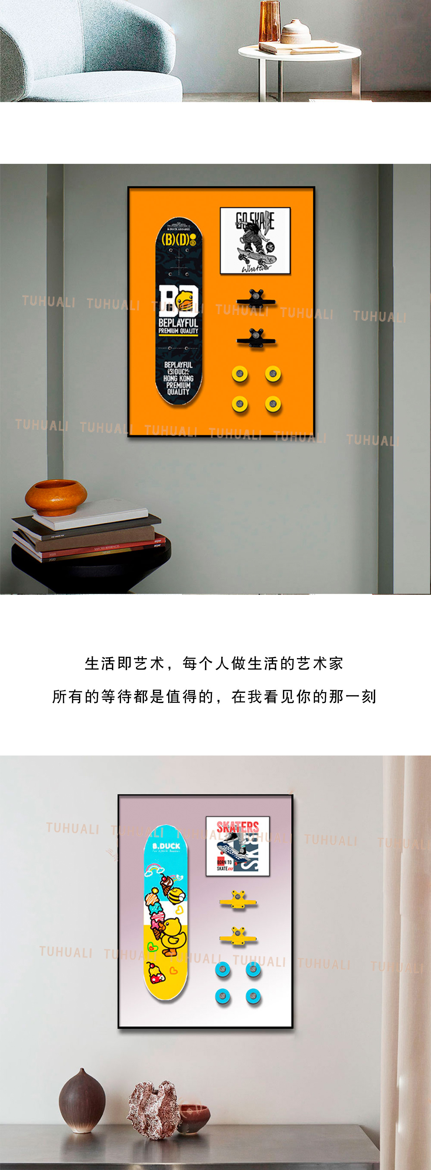 Pinturas decorativas de patineta Pinturas físicas tridimensionales Pinturas colgantes de juegos de moda Sala de estar Pasos de entrada Mural Habitación infantil simple Pintura de cabecera