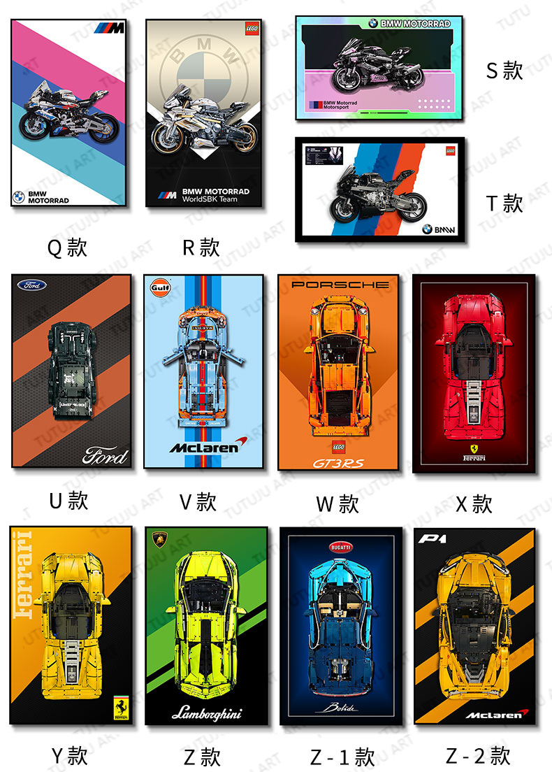 Bloques de construcción en la pared Pintura física tridimensional Modelo de carreras 2025 Edición de marcos de fotos Dormitorio de niños Colgante de cabecera de cama para niños