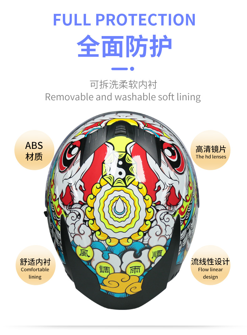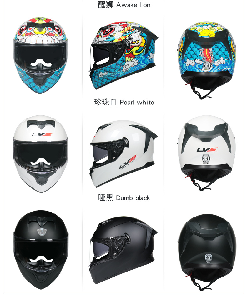 LVS casco de motocicleta vintage motocicleta casco completo hombres y mujeres todo incluido otoño e invierno a prueba de frío casco cálido