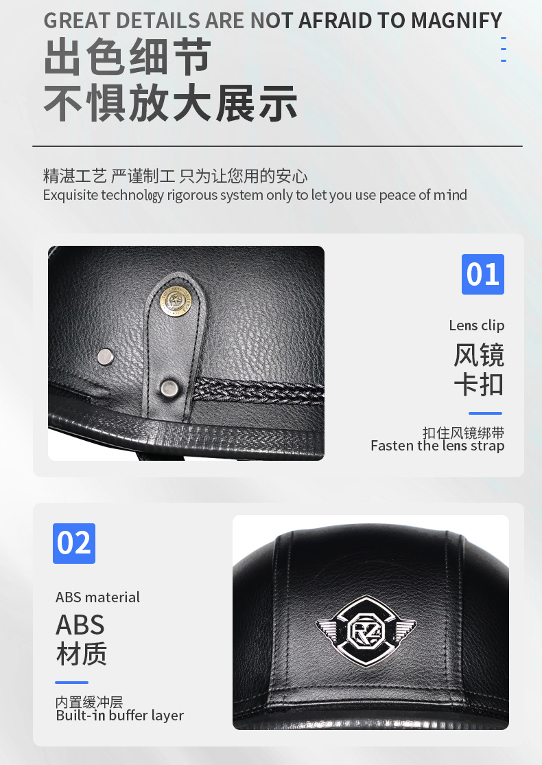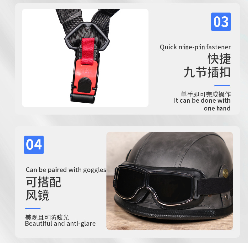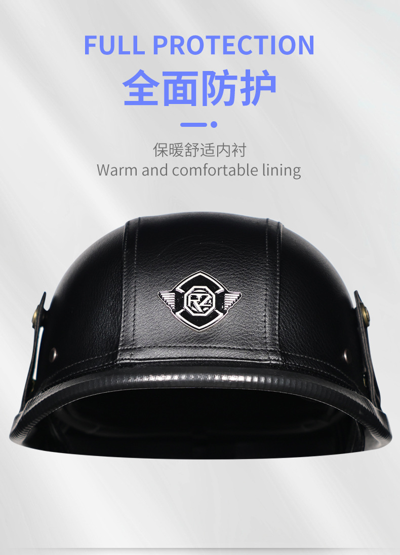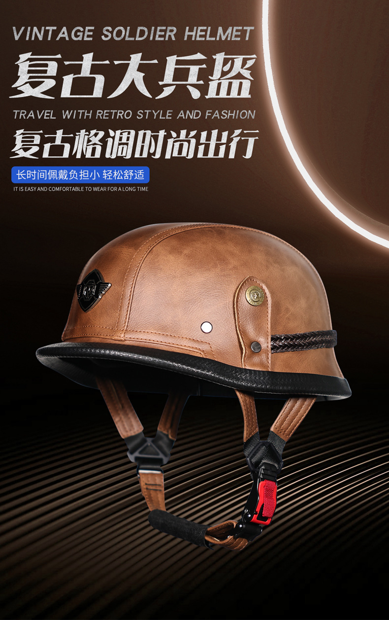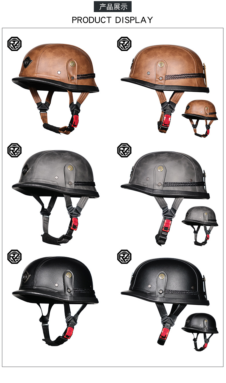 3C Alemania Segunda Guerra Mundial Casco de acero retro Casco de cuero Verano Retro Harley Medio casco Casco de motocicleta semi-cubierto Hombre