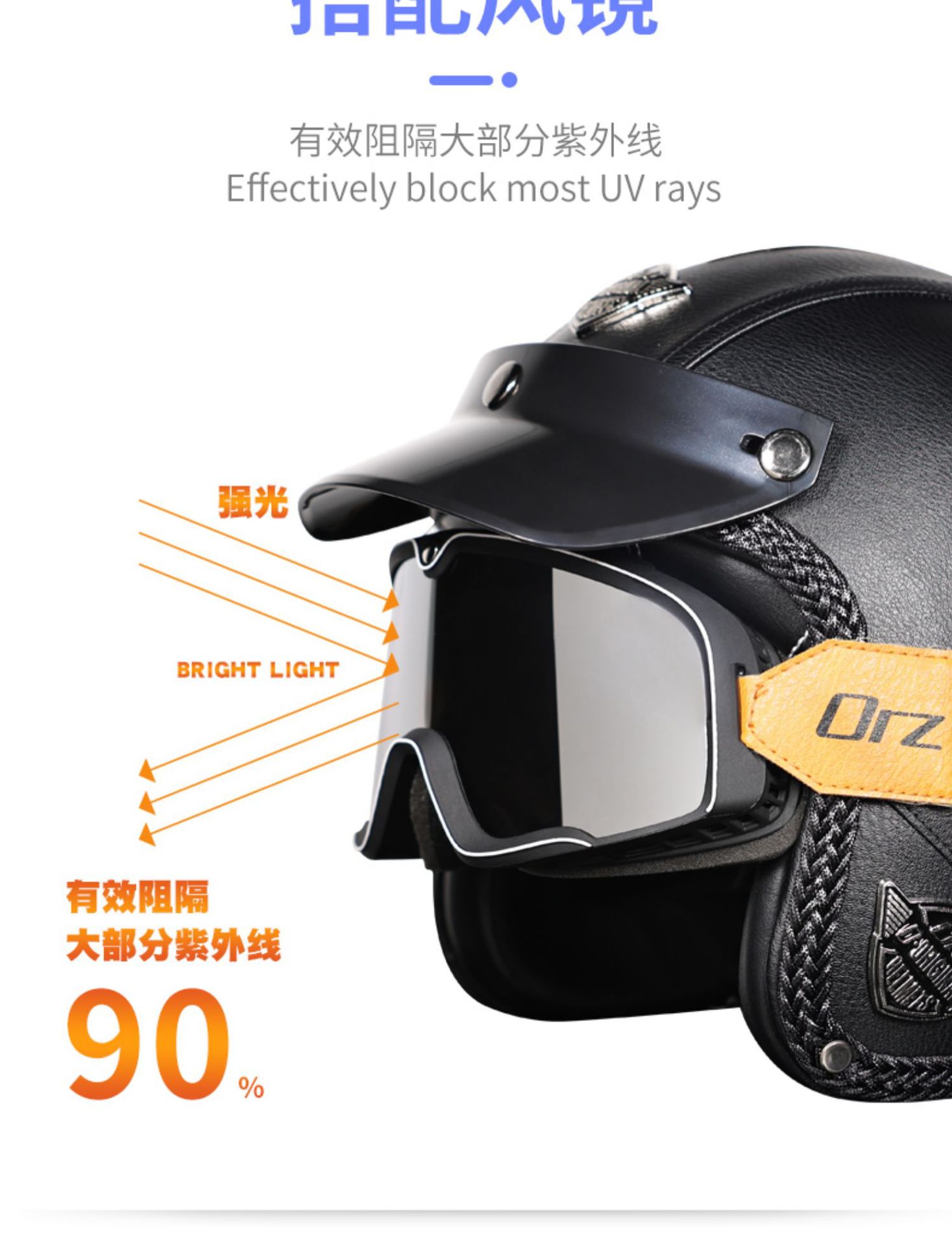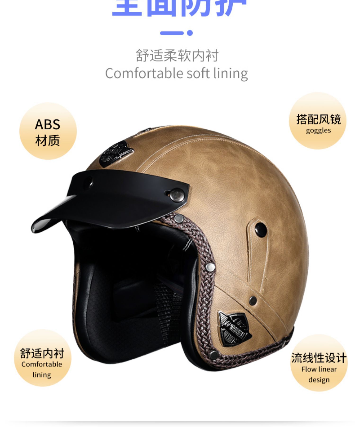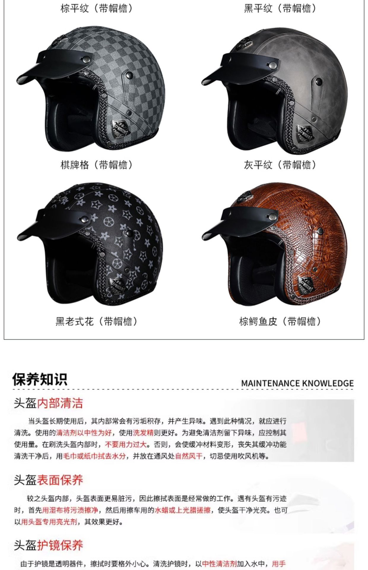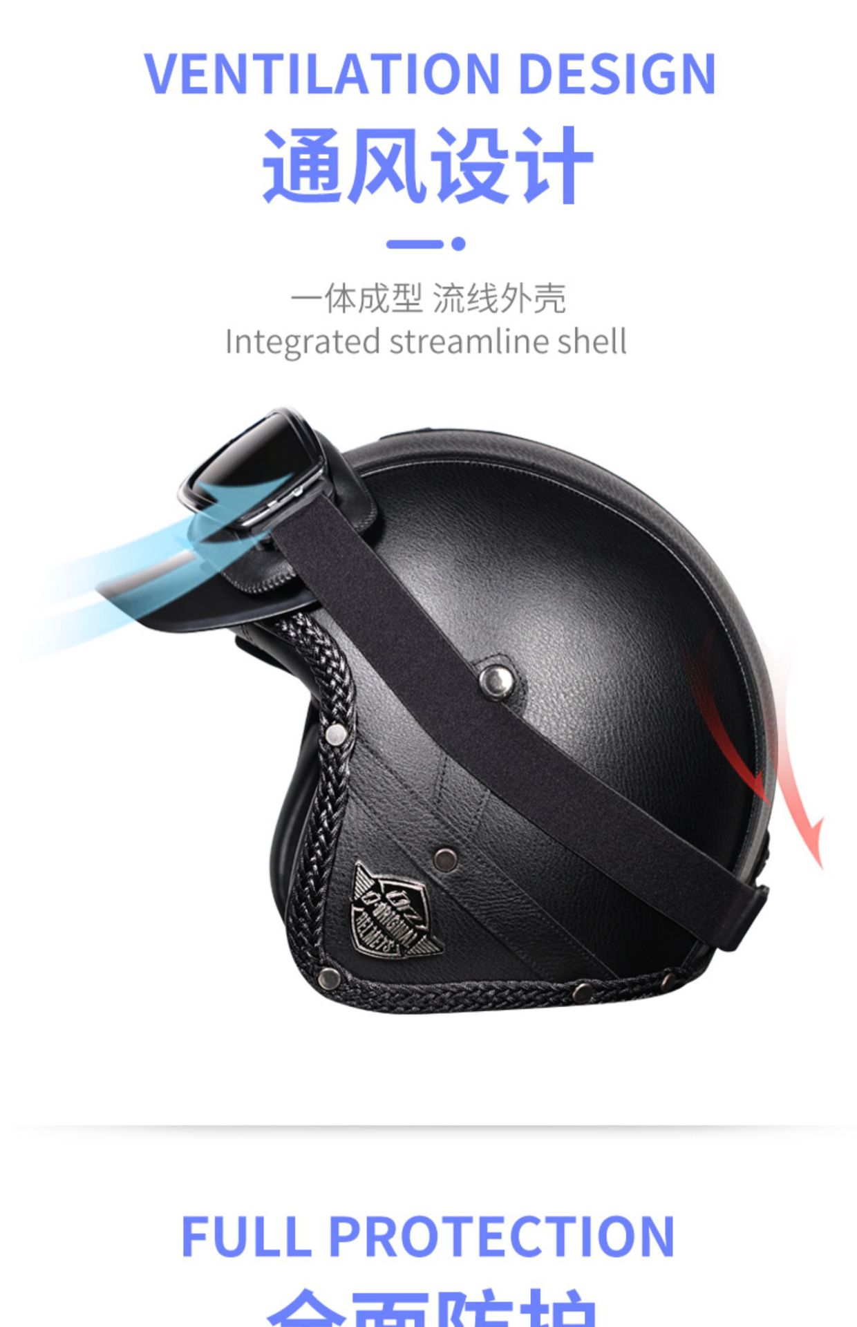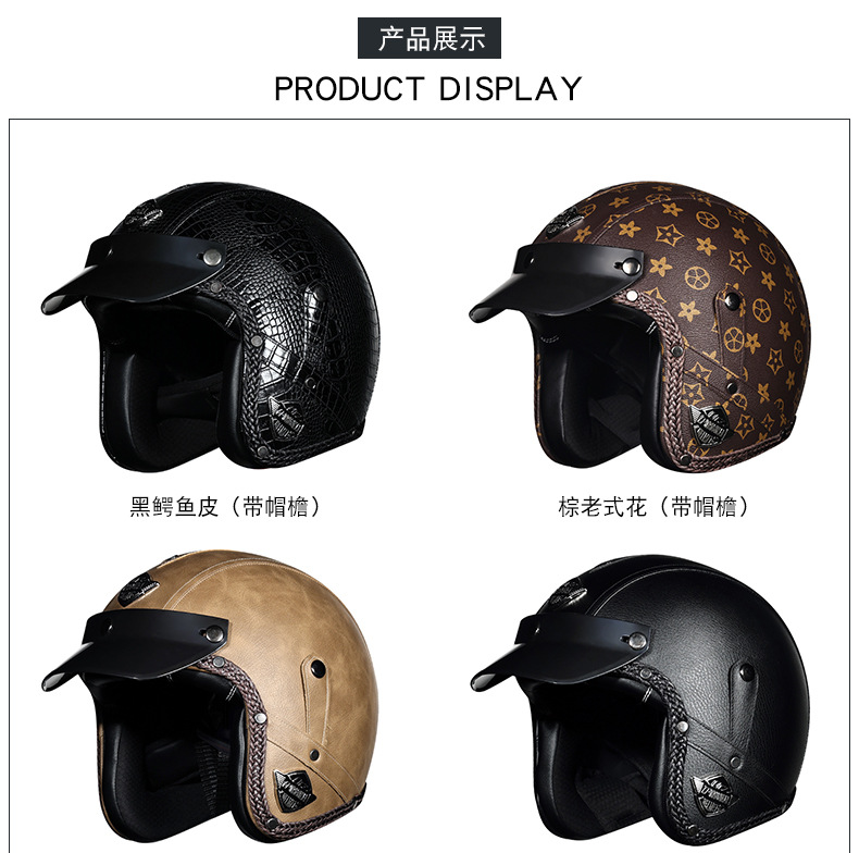 Casco de Motocicleta Certificado 3C para Hombre y Mujer, Gorra de Motocicleta Retro, Casco 3/4 de Cuero Hecho a Mano, Gorra para Vehículo Eléctrico