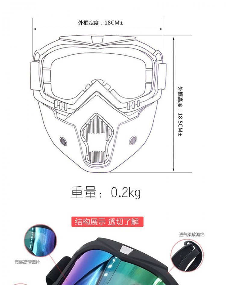 Retro gafas medio casco máscara motocicleta casco máscara a prueba de viento gafas off-road gafas