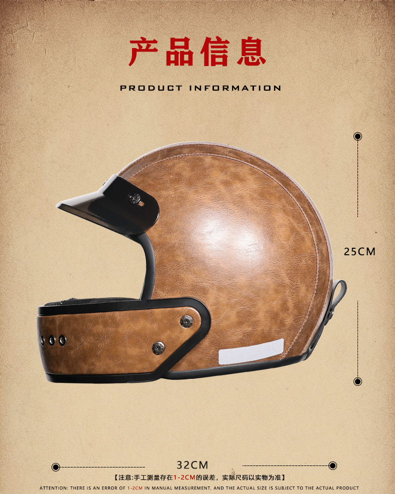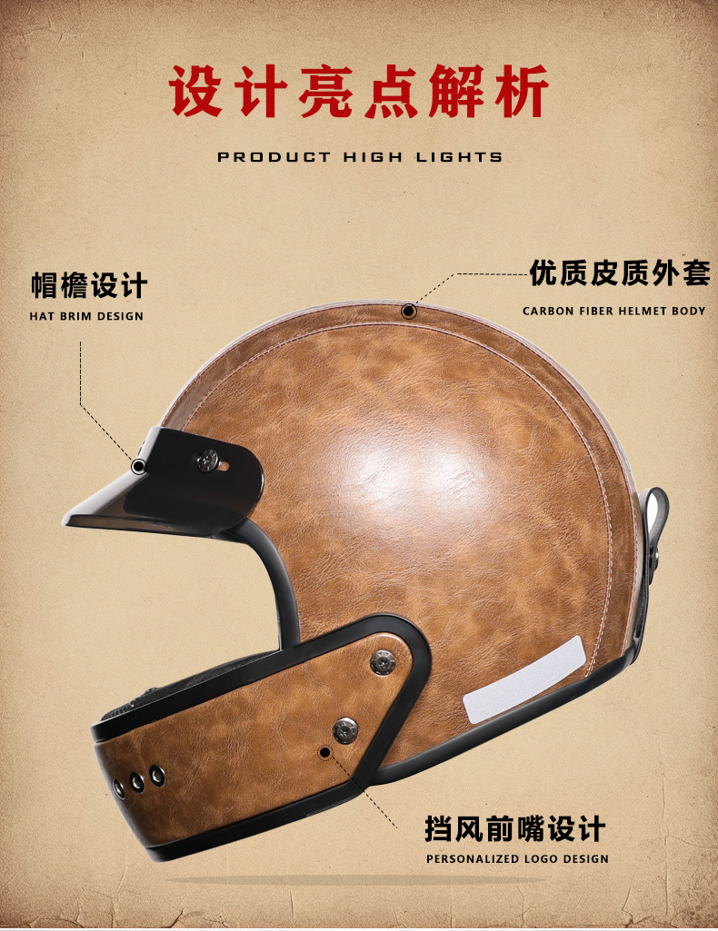 3C certificado retro 3/4 personalizado barbilla de cuero desmontable casco pequeño casco de motocicleta motocicleta motocicleta motocicleta