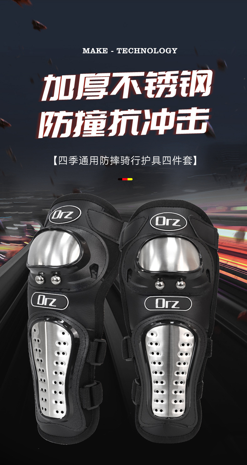 La primavera y el verano de la motocicleta rodillera de acero inoxidable almohadilla de codo de cuatro piezas Equipo de protección para hombres equipo de equitación Caballero resistente a la caída