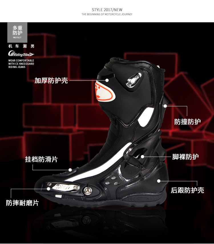 Tribu de montar a caballo de la motocicleta zapatos de los hombres fuera de la carretera zapatos de carreras botas largas Caballero de la motocicleta Zapatos resistentes a la caída de cuatro estaciones