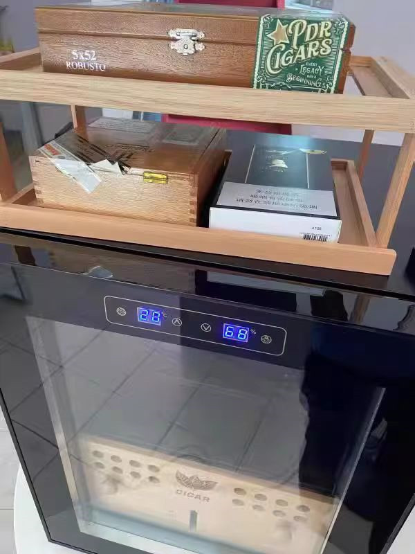 48L pequeño gabinete de cigarro doméstico control de humedad control de temperatura compresor gabinete de tabaco y vino de madera de cedro gabinete de temperatura constante y humedad constante refrigerado por aire