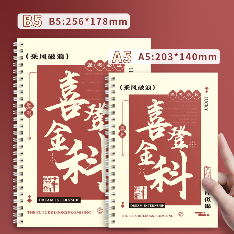 Prueba de bobina cuaderno de buena suerte estudiante de secundaria estudiante de secundaria A5 lindo libro de círculo de alambre libro de título de la lista de oro